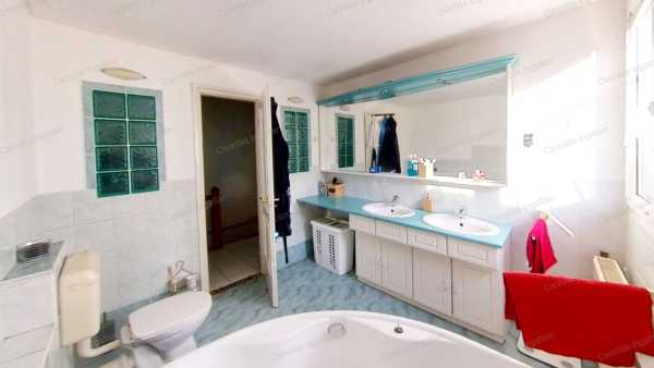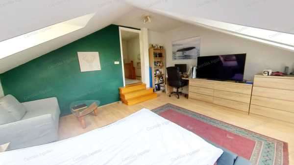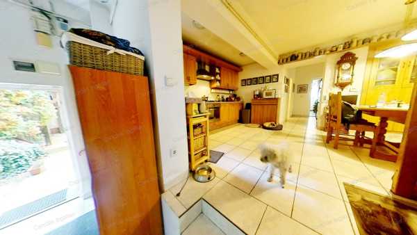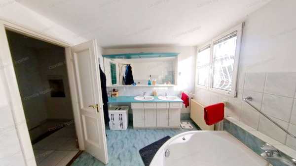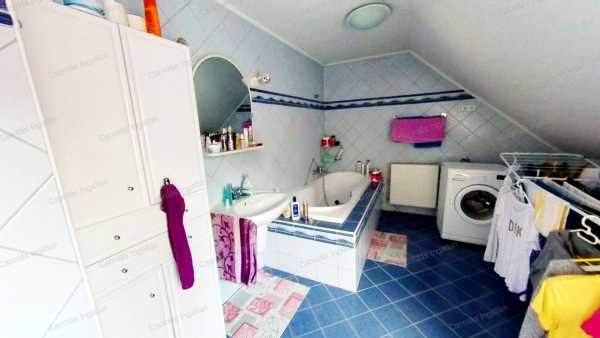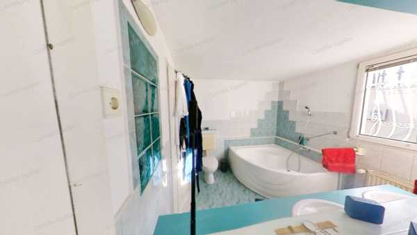 A ház kisebbik része kő és tégla építésű, melyet 2003-BAN két lakásos lakóházzá BŐVÍTETTEK hozzáépítéssel és tetőtérbeépítéssel. A két lakórész KÜLÖN KÖZMŰ órákkal rendelkezik. A kisebbik, 81,37 m2-es (2.) lakás tetőtéri beépítés, saját lépcsőházzal, melynek hasznos lakóterülete a tetőtér miatt 43,97 m2. Itt egy nagy fürdőszobát, egy hálót és egy igazán tágas nappalit találunk, melyben a konyha-étkező rész is megtalálható. A nagyobbik (1.) lakás földszintje 110,52 m2, a tetőtéri rész 51,05 m2, melyből a hasznos lakótér a tetőtér miatt 33,76 m2. Ebben a lakrészben a földszinten egy méretes, világos szobát találunk, melyet jelenleg nagy, családi étkezőnek használnak. Ezzel szemben egy HATALMAS KONYHÁBA érkezünk, melyet kiegészít egy kisebb étkező rész is. Innen indul a tetőtérbe vezető lépcső is. A konyhából tovább haladva, balra a zuhanyzós fürdőszoba van, vele szemben a kazánház, balra pedig a valóban NAGY MÉRETŰ, VILÁGOS NAPPALI található. A nappaliból nyílik a hálószoba nagy gardróbbal. A tetőtérben két tágas szobát és egy fürdőszobát találunk. Az egyik szobában, melyet jelenleg edző szobának használnak, egy négy személyes FINN SZAUNA is megtalálható. A lakás alatt 29,84 m2-es PINCE helyezkedik el, melyet egy tárolóra és egy hangulatos boros pincére osztottak el. A ház mögött közvetlenül nagyobb társaság számára is KÉNYELMES MÉRETŰ TERASZT alakítottak ki, melyet kitekerhető árnyékolóval is elláttak. Az kertből POMPÁS PANORÁMA tárul elénk a várra. A kert végében KERTI SÜTÖGETŐ hely egy tároló helyiséggel teszi kellemesebbé a zárt udvarrészt. Az ingatlan bejárata térkővel BURKOLT, FEDETT, két autó számára alkalmas KOCSIBEÁLLÓ. Mindkét lakórész fűtése saját GÁZKAZÁNNAL, RADIÁTOROS ÉS PADLÓFŰTÉSES kombinációval van megoldva. A nagyobbik lakás hatalmas nappalijában egy igényesen megépített, GYÖNYÖRŰ CSERÉPKÁLYHA teszi hangulatosabbá a téli estéket. A nappaliban FŰTŐ-HŰTŐ KLÍMÁT is felszereltek. Az ingatlan REZSIJE, mind a villany mind a gázfogyasztás tekintetében BŐVEN BELEFÉR A TÁMOGATOTT KVÓTÁBA! Kiválóan alkalmas két család együtt költözéséhez, befektetésnek, nagyobb családnak egyaránt. NÉZZE MEG az ingatlanról készült VIRTUÁLIS SÉTÁT is! kisebbik lakás: https://my.matterport.com/show/?m=v8s8X3WcoX7 Nagyobbik lakás: https://my.matterport.com/show/?m=vmCJTggoS6T HÍVJON, hogy az Ön otthona legyen ez a nagyszerű lehetőségeket kínáló ingatlan! Bankfüggetlen INGYENES hitelügyintézés, INGYENES CSOK ügyintézés. Ön csak kitalálja, mire keres megoldást és nyugodtan hátra dőlhet, a többi a mi dolgunk.