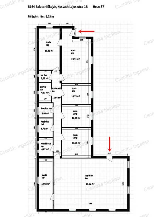 Az épület eddig bankfiókként működött. A KÉT BEJÁRATTAL rendelkező téglaépületben NAGY, VILÁGOS HELYISÉGEKET találunk. A házba belépve egy hatalmas, sok ablakkal ellátott, világos helyiségbe érkezünk, mely az egykori banki ügyféltér volt. A TEKINTÉLYES MÉRETŰ, csaknem 70 m2-es HELYISÉGBŐL akár több szoba is kialakítható. Az ügyféltérből nyílik egy irattárnak használt, kényelmes méretű helyiség. A bejárattól jobbra, hátul nyílik a közlekedő folyosó, amelyről a további helyiségek nyílnak. Balra a WC-kézmosó, vele szemben egy tágas szoba található. Tovább haladva A WC mellett a kazánház, mellette egy kis konyha, velük szemben szintén egy MÉRETES SZOBA helyezkedik el. A konyha mellett az egykori szerverszoba, mellette szintén egy WC-kézmosó van. Velük szemben egy másik szoba, melyből egy VALÓBAN TÁGAS, NAGY SZOBÁBA léphetünk be. Ebből a szobából nyílik az épület másik bejárata. A folyosó végén egy szintén kényelmesen tágas méretű szoba található, mely egy ajtóval kapcsolódik a már említett, külső bejárattal is rendelkező nagy szobához. A hét szobából álló ház szinte MINDEGYIK SZOBÁJA KLÍMABERENDEZÉSSEL van felszerelve. A fűtést gázkazán biztosítja radiátorokkal. A nyílászárók részben fa és műanyag, hőszigetelt üvegezésű ablakok, részben dupla szárnyú, fa ablakok. Az ELEKTROMOS HÁLÓZAT 3X32A. Az esetleges áramszünet kivédésére egy AGREGÁTOR BERENDEZÉS is rendelkezésre áll. Az épületben RIASZTÓ BERENDEZÉS ÉS KAMERARENDSZER, TŰZ ÉS FÜSTJELZŐ lett kiépítve. A födém beton, ezért az EGÉSZ PADLÁSTÉR JÁRHATÓ, BEÉPÍTHETŐ. Az udvar burkolat aszfalt és beton térkő. A hátsó rész sík füvesített terület. Az ingatlan KIVÁLÓAN ALKALMAS TÖBB LAKÁSOS LAKÓÉPÜLET, VAGY ÜDÜLŐ, NYARALÓ KIALAKÍTÁSÁRA. A településen található Magyarország vadonatúj Balaton Park Circuit motorverseny pályája. A település megközelíthetősége kiváló, M7 autópálya, 7-es, 71-es, 8-as utak mind a település mellett haladnak el. BALATONAKARATTYA MINDÖSSZE 3-4 KM-re van, mely KERÉKPÁRÚTON is könnyedén elérhető. A vételárhoz +27% ÁFA fizetendő. NÉZZE MEG az ingatlanról készült VIRTUÁLIS SÉTÁT is, „sétáljon végig” saroktól sarokig a házban! https://my.matterport.com/show/?m=nEkVn57tEp9 HÍVJON, hogy Öné legyen ez a remek lehetőségeket kínáló, azonnal birtokba vehető ingatlan!