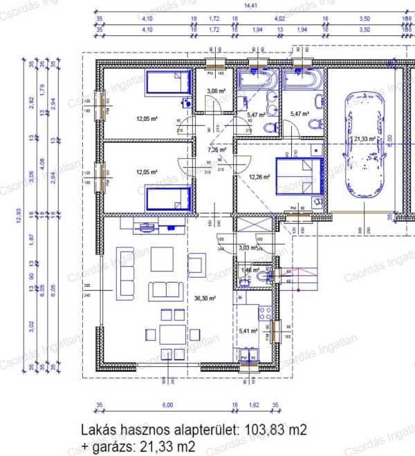 ÚJ ÉPÍTÉSŰ, KIVÁLÓ ELRENDEZÉSŰ, egyszintes, ENERGIATAKARÉKOS kulcsrakész családi ház eladó Hajmáskéren. Az 1 000 m2-es területen összesen 2 db, nettó 125 m2-es iker ház GARÁZZSAL kerül megépítésre, 500-500 m2 telekkel, melyek társasházként, külön helyrajzi számmal és külön közmű bekötéssel fognak rendelkezni. A telkek külön-külön bejárattal rendelkeznek. Épületek bemutatása: A területen elhelyezkedő két darab ház méreteiben, műszaki tartalmában és belső kialakításában teljesen megegyező. A házak annyiban térnek el egymástól, hogy jobbos vagy balos (tükörkép) irányultságúak. Rendkívül világos, valóban tágas, jól bútorozható helyiségeket találunk. A méretes nappali, konyha-étkező, 3 hálószoba, két fürdőszoba, 3 WC, igazán remek otthona lesz egy nagyobb létszámú családnak is. Az épületek elhelyezésénél, formájának kialakításánál, a homlokzat irány meghatározásánál, elsődleges szempont volt, hogy az épületek a legkevesebb energiafelhasználás mellett legyenek üzemeltethetők/fenntarthatók. Ennek érdekében a nyílászárók, KÜLSŐ ÉS BELSŐ HŐSZIGETELÉS KÜLÖNÖSEN NAGY HANGSÚLYT KAPTAK. Az így kialakított-egész lakóteret körbe ölelő-hőhídmentes thermo-burok lehetővé teszi, hogy AZ ÉPÜLETEK MINIMÁLIS ENERGIA IGÉNNYEL FENTARTHATÓAK legyenek, villanyáram, fűtés és a meleg víz ellátásának tekintetében (30 cm hőszigetelés a falakban, 20 cm hőszigetelés a födémben). Épületenergetikai minőségtanúsítvány: AA (Közel NULLA energiaigényre vonatkozó követelménynél JOBB) !!! Helyiség lista nettó alapterülete: 01 Előtér (bejárati) 3,01 m2 02 WC 1,46 m2 03 Nappali - Étkező 36,3 m2 04 Konyha 5,4 m2 05 Háztartási helyiség (gépészet) 2,97 m2 05 Szoba1 12,09 m2 06 Fürdőszoba+wc 5,56 m2 08 Közlekedő (szobák előtt) 7,12 m2 09 Szoba2 12,09 m2 10 Fürdőszoba+wc 5,47 m2 11 Szoba3 12,2 m2 12 Garázs 21,1 m2 Összesen: 124,77 m2 Szerkezeti felépítés: - Zsalukő lábazat - Vasalt beton alap lemez - Fából készült szerkezet - 15cm hőszigetelés a falakban - 20/15cm EPS Dryvit rendszer homlokzati hőszigetelés - Fa tetőszerkezet - Égetett kerámia cserépfedés A teljes felhasznált FŰTÉSI ÉS HASZNÁLATI MELEG VÍZ előállításáról MODERN Panasonic Aquarea All in One HŐSZIVATTYÚ gondoskodik. Fűtési rendszer: Panasonic Aquarea All in One hőszivattyú Okos (SMART) PADLÓFŰTÉS betonágyazatba építve. Helyiségenként padlószenzorral és termosztáttal ellátva, amely mobiltelefonos applikációval helyiségenként TÁVOLRÓL IS SZABÁLYOZHATÓ. Ingatlanok készültségi szintje: - szerkezetkész állapot - homlokzati nyílászárók - homlokzatok hőszigetelése 20-15 cm vtg. EPS - falakban a szigetelés 15 cm vtg. (ásványgyapot) - födémben nincs szigetelés - villanyszerelés 50%-ban kész anyagok a helyszínen - gipszkartonozás 50%-ban kész anyagok a helyszínen Ára 39.000.000 Ft (külön és egyben is eladó) TÖKÉLETES VÁLASZTÁS a jó vételhez! HÍVJON, hogy az Öné legyen ezen KIVÁLÓ ÁR-ÉRTÉKARÁNYÚ LAKÓHÁZ valamelyike! Bankfüggetlen INGYENES hitelügyintézés és CSOK PLUSZ ügyintézés. Ön csak kitalálja, mire keres megoldást és nyugodtan hátra dőlhet, a többi a mi dolgunk.