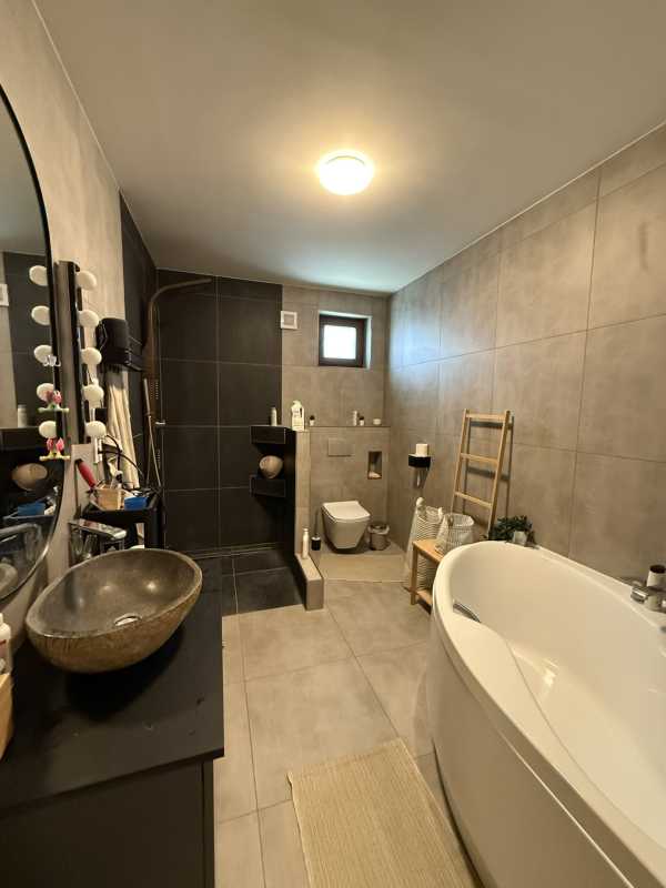 Felújított családi ház eladó Csolnokon – költözésre kész állapotban! Csolnok csendes, nyugodt részén kínálunk eladásra egy 140 m²-es, kiváló elosztású családi házat, amely ideális választás családok számára! Az ingatlanban egy tágas, világos nappali amerikai konyhával, valamint 3 külön nyíló hálószoba található – tökéletes elrendezés akár nagycsaládosoknak is. A ház főbb jellemzői: Részben felújított tetőszerkezet, pala fedéssel Folyamatban lévő 14 cm-es külső szigetelés (áprilisban) Új nyílászárók és bejárati ajtó Teljesen új víz- és villanyhálózat Modern burkolatok minden helyiségben Korszerű fűtésrendszer: új kondenzációs gázkazán, padlófűtéssel Gépészet külön helyiségben, a szuterénban elhelyezve A ház belül igényesen felújított, már csak költözni kell! Tágas terek, modern megoldások, energiatakarékos működés – ez az otthon hosszú távon is kényelmes és fenntartható. Irányár: 81.000.000 Ft További információért, megtekintésért keress bátran!