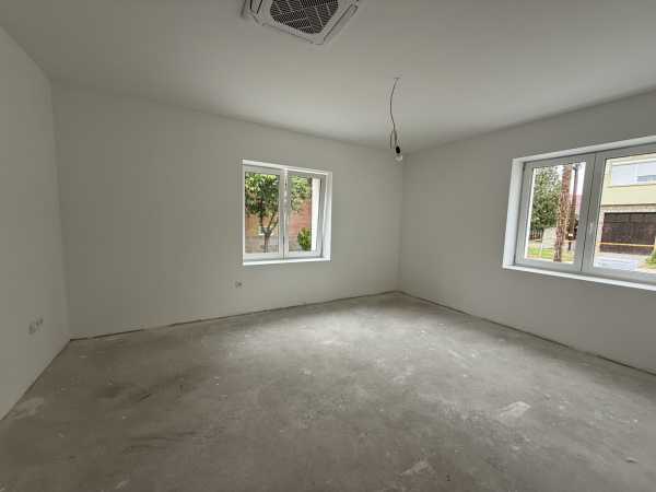 Eladó újépítésű lakás Esztergomban, Szentgyörgymezőn! Esztergom kedvelt városrészén, Szentgyörgymezőn kínálunk megvételre egy 4 lakásos, újépítésű társasházban 322 m²-es telken. A lakás befejezése – hideg- és melegburkolatok, szaniterek – az új tulajdonos igényei szerint történhet, ezek költsége a vételár részét képezi. A földszinten és a tetőtérben egyaránt 2-2 lakás került kialakításra. Minden lakáshoz saját tároló tartozik a pinceszinten, továbbá közös használatban áll a lépcsőház és a társasház közös helyiségei. Az udvar térkő burkolatot kapott, részben parkolóként, részben zöldfelületként funkcionál. Minden lakáshoz egy gépkocsi beálló tartozik. A kert osztatlan közös tulajdonban van, az elektromos kapu pedig kényelmes bejutást biztosít. Minden lakás külön mérőórákkal rendelkezik (vízóra, villanyóra – H tarifás lehetőséggel). A modern, energiatakarékos Fischer klímaberendezés biztosítja a fűtést és hűtést. A gázcsonk az udvarban található, így igény szerint bevezethető a lakásba. A háromrétegű, műanyag nyílászárók és a korszerű épületszigetelés alacsony fenntartási költségeket garantálnak. Elérhető lakások: D lakás: nappali-konyha, 2 hálószoba, tároló, fürdőszoba, WC, közlekedő – 64,6 m² – Ár: 64,9 M Ft Az ingatlan kiváló elhelyezkedésű: a közelben buszmegálló, üzletek, iskola, óvoda, gyógyszertár is elérhető. Irodánk teljes körű jogi és pénzügyi ügyintézéssel segíti a vásárlást. További információért forduljon hozzánk bizalommal – szívesen segítünk!