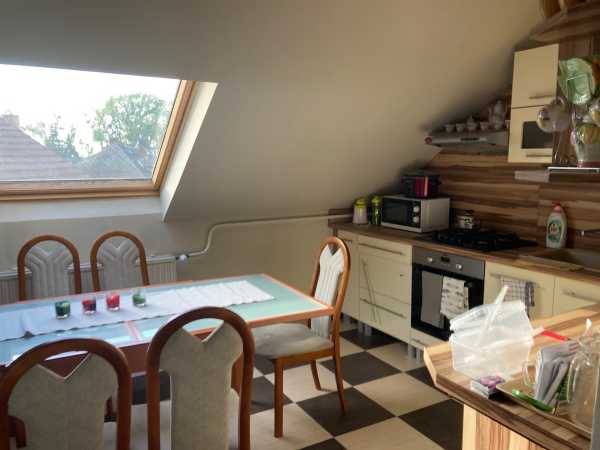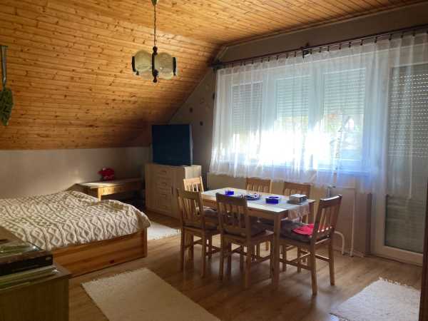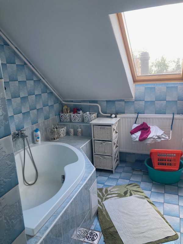 Tata Újhegy városrészben, a Juharfa utcában eladó egy kétgenerációs ház. Az ingatlan 166 m2 alapterületű, az udvar mérete 683 m2. Mindkét szint külön is megközelíthető. A földszinti részen (melynek alapterülete 72 m2) két szoba és két félszoba van, sarokkádas fürdőszoba, valamint egy tágas konyha, melyben az étkezőasztal is helyet kapott. Ehhez tágas fedett terasz tartozik, ami kiváló helyszín a kerti rendezvényekhez. Az emeleten két egész és egy félszoba található, egy tágas nappali, konyha étkezőrésszel, kamra, fürdőszoba, valamint egy kisebb terasz. Az emelet 94 m2 alapterületű. Az udvarban önálló garázs és három kisebb kamra található. Az udvar garázs előtti területe betonozott, a többi részen virágok találhatóak. Az ingatlan jó állapotú, fűtését gázkazán, a meleg vizet gázbojler biztosítja. A közelben halad el a bicikliút, a vasútállomás is elérhető pár perc sétával. A városközpont kerékpárral és autóval is elérhető pár perc alatt. Tekintse meg, állapodjunk meg a vételárban!
