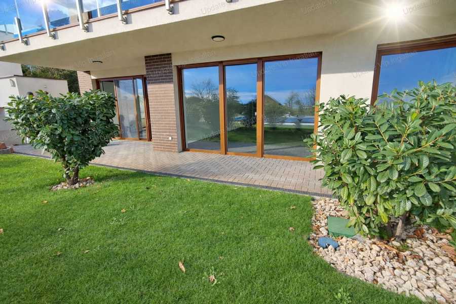 AZ UPDATE VIP INGATLANIRODA KINÁLATÁBÓL: Új, panorámás, kertkapcsolatos lakás eladó Balatonalmádiban! Balatonalmádi egyik modern, csendes lakóparkjában kínálunk megvételre egy teljesen új, még nem lakott, földszinti, kertkapcsolatos lakást. Ideális választás mindenkinek, aki szereti, ha a nappaliból kilépve egyből a teraszra vagy a saját kertjébe érkezik — lépcsők, kompromisszumok nélkül. A lakópark lakói számára medence is rendelkezésre áll, így a nyári kikapcsolódás szó szerint csak pár lépésre van. A LAKÁS JELLEMZŐI: - 46 m²-es alapterület, nappali + hálószoba - saját nagy méretű tároló - 12 m² privát terasz + 10 m² saját előkert - saját felszíni parkoló MŰSZAKI TARTALOM, EXTRÁK: ✔ új, modern burkolatok és igényes kivitelezés ✔ elegáns, exkluzív fürdőszoba minőségi szaniterekkel ✔ rejtett mennyezeti világítás ✔ panoráma tolóajtó ✔ elektromos redőnyök ✔ parketta a szobákban A lakás H-tarifás, fűtő-hűtő klímával üzemel, az épületben nincs gáz. A falak 15 cm grafitos szigetelést kaptak, a nyílászárók Internorm, 3 rétegű műanyag ablakok, alumínium redőnyökkel. KÖRNYEZET, ELHELYEZKEDÉS: - 10 lakásos, új építésű társasház - parkosított, rendezett, zárt lakópark - közös használatú medence - strand: 800 m - yachtkikötő: pár perc gyalog A lakás alacsony rezsiköltségű, így állandó otthonnak, nyaralónak vagy befektetésre egyaránt ideális. Bővebb információért, megtekintés egyeztetésért, kérem keressen a megadott elérhetőségeimen! UPDATE VIP INGATLAN IRODA további szolgáltatásai: Energetikai tanúsítvány készítés • Díjmentes, banksemleges hitelügyintézés • Ügyvédi háttér • Közjegyző • Földhivatali ügyintézés • Építész • Lakberendező