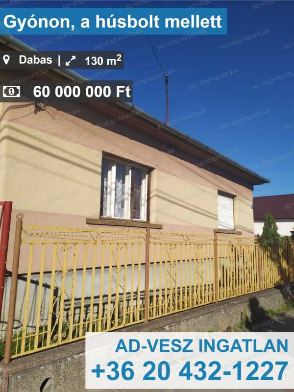 CSAK NÁLUNK!! Dabas-Gyón központjában, a Kossuth Lajos utcán, "Gyuri húsboltja" mellett eladó egy 2 lakrészből álló, azonnal költözhető családi ház!!! Befektetésnek! A hatalmas, 2102m2-es telken álló ingatlan Gyón legközpontibb központjában, a Kossuth Lajos utcában van. Összeköltözőknek! Szétköltözőknek! Mivel az L alakú épület "nagyházból", és egy kis lakrészből áll, alkalmas arra, hogy a szülőkkel akár összeköltözve, akár szétköltözve, de igény szerint mégis egy telken, együtt lehessen élni. A "nagyház" 2 hálószoba, nappali, előszoba, kamra, főzőfülke, étkező, fürdőszoba, míg az udvarról külön nyíló lakrész szoba, konyha, kamra, fürdő helyiségekből áll. A ház részben alápincézett ahol a kazán, verem, és padlás is megtalálható. A hatalmas, 2102m2-es telken a házon kívül lóistálló, sertésól, zárt gabonatároló, garázs, nyárikonyha, és a fúrott kúttal locsolható nagy kert is helyet kapott. Mivel abszolút központi helyen van, így buszmegálló, orvosi rendelők, posta, óvoda, 2bölcsőde, 4féle egyházi gyülekezet temploma, bolt, játszótér, pékség, stb. pár perces sétával elérhető. Hazudnék, ha azt mondanám, hogy nem kell rá költeni, ám némi felújítással szuper lakóházban, szuper helyen fog élni, aki az új tulajdonosa lesz ennek az ingatlannak. Sinkóné Varga Klára 06204321227