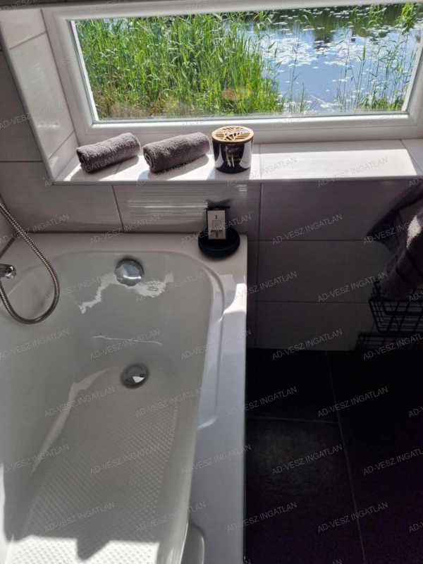 Kivételes ingatlan a természet szerelmeseinek! Hangulatos hétvégi házikó eladó Dömsödön, saját stéggel a vízparti pihenéshez! Szeretnél egy nyugodt, vízparti helyet, ahová bármikor elvonulhatsz a világ zajától!? Akkor ez a kis ház neked való! Ez a 45m2-es, tégla építésű ingatlan minden helyiségéből lenyűgöző vízre néző kilátással várja új tulajdonosát. Az újszerű állapotú hétvégi ház minden igényt kielégít, hiszen összkomfortos, így a pihenés minden pillanata maximálisan élvezhető. Az épület betonalapra épült, tetejét cserép fedi, a külső falak, és a fafödém is 5cm-es szigetelést kapott. A ház műanyag nyílászárókkal, klímás hűtés-fűtéssel, 2,3m belmagassággal, a két hálószobában laminált parketta, a többi helyiségben pedig járólapos padló burkolattal rendelkezik. Az utcafronti szélesség 19,5m a telek hosszúsága pedig 40m. Az átlag rezsi körülbelül 30000ft, az állandó 21°C-os klímahasználat mellett, így garantálja a saját split klíma az optimális hőmérsékletet. Az ingatlanhoz igény szerint még egy plusz saját félstég is tartozik. A telek mérete 814m2, amely bőséges teret biztosít a szabadidő eltöltésére és a kikapcsolódásra. Jelenleg az ingatlan udvarán lehetséges a parkolás, de mivel a beépíthetőség 30%, így elegendő hely van akár önálló, akár a lakóházzal egybeépítendő garázs kialakítására is, ezért a vendégek fogadása sem jelent problémát. A közművek közül a víz, villany, csatorna rákötésre került, a gáz pedig az utcában található. Tulajdonilap szerint belterület, kivett hétvégiház, udvar besorolású. Állandó lakhatásra is alkalmas, természetesen állandó lakcím bejelentéssel együtt. Bár részben bútorozott, az ingatlan új tulajdonosa saját ízlésének megfelelően alakíthatja ki a belső teret. Akadály mentesített kialakítása pedig különösen előnyös, ha a kényelmet, és hozzá férhetőséget tartja szem előtt. Ne hagyja ki ezt a remek lehetőséget, hogy egy igazán különleges ingatlan tulajdonosa legyen Dömsödön! Fedezze fel ezt a varázslatos adottságokkal rendelkező ingatlant. Sinkóné Varga Klára 06-20/432-1227