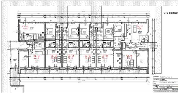 Gyermekváros Lakóparkban kínálunk megvételre lakásokat, Komárom belterületén, a Dunától délre, központ közeli, kisvárosias lakóterületen! Az épületegyüttes hatalmas, közel 23 ezer négyzetméter területen fekszik, körülötte zöldterülettel és magán kertekkel. Az épületegyüttes különböző egységekből áll, összesen 7 épületből, A, B és C jelöléssel. Az "A" jelű épület 4 egységből áll, melyben lakások, tárolók, üzletek és étterem kerül kialakításra. A B jelű lakóépület kétszintes, melyben a földszinten 4, az emeleten 5 lakás lesz. A C1 és C2 jelű épületek sorházi jelleggel, földszintes, kis privát kertes kialakítással, épületenként 8-8 lakásból állnak. Ennél az épületnél bővítési lehetőség is adott, a szélső lakásoknál. A lakóegységek itt is különböző méretűek, 32 és 53 nm közötti garzon és nappali + 1 hálószobás kialakítással. Mindegyik lakás kertkapcsolatos, a privát kertek a nappaliból nyíló teraszon keresztül közelíthetőek meg. Az épületrészeket összekötő helyiségek közös, saját tároló, illetve hulladéktároló funkciót kapnak. Ez a lakás a C2 épületben lévő 44 nm-es, L2-es lakás, amerikai-konyha-nappali, + szoba kialakítású, 25 nm-es terasszal és majdnem 40 nm-es saját kertkapcsolattal. A lakások szerkezetkész állapotban kerülnek értékesítésre, mely a következőket tartalmazza: - bejárati ajtó - vizes blokkok kialakítása: fürdőszoba zuhanyzóval, villanybojlerrel, törölköző szárítós radiátorral, wc-vel és mosdóval, csap kiállásokkal - a lakások fűtéséről és hűtéséről hűtő-fűtő klíma fog gondoskodni - konnektorok és villanykapcsolók kiállásának kialakítása Az erkély, loggia és a földszinti lakásokhoz tartozó kertek nem képezik a vételár részét. Az épület külső homlokzata 15 cm-es EPS szigeteléssel lesz ellátva. A homlokzaton megjelennek még antracit színű acél zártszelvényből készülő korlátok, térelválasztó paravánok, melyekben homokfúvott biztonsági üveg elemeket helyeznek el. A nyílászárók hőszigetelt alumínium szerkezetűek, antracit színben. A lakáshoz megvásárolható saját parkoló, bruttó 1.200.000,-Ft.-ért, mely a lakópark magánútján található és sorompóval lesz elzárva. A teljes területen az épületek megközelítését szolgáló belső utak, járdák, parkolók, és zöldfelületek is megtervezettek. Közösségi terek lesznek kialakítva: játszótér árnyékolva, a felnőttek és gyerekek számára sportolásra alkalmas terület fitnesz eszközökkel, asztalitenisz asztallal, 50 m hosszú futófelület. A területen padok, asztalok, hulladékgyűjtők, ivókutak, és térvilágító lámpatestek kerülnek elhelyezésre. Ezen kívül a három személybejáró mellett zárható kerékpár tároló is kialakításra kerül. A zöldfelület beültetése is tervben van, melyben megtalálhatók lesznek lombhullató és örökzöld fák, cserjék, talajtakaró növények, gyepfelület, valamint függőleges zöldfalak futónövényekkel futtatva. A terület északkeleti oldalán gyümölcsfák lesznek telepítve, fűszerkerttel és pihenő padokkal. A kerítések mellett zaj és porfogóként, valamint levegőszűrőként sövényeket ültetnek. Az átadás várható időpontja 2026. II. negyedév. Bővebb tájékoztatásért kérem keressen bizalommal, részletes műszaki leírás rendelkezésemre áll, melyet személyes érdeklődés esetén bemutatok. Válassza ezt a remek lehetőséget akár beruházásként, hiszen nagy igény mutatkozik a kiadható kis lakások iránt. Természetesen családok új otthonaként is ideális választás. Adatbázisunkban számos eladó-kiadó ingatlan közül választhat. Személyre szabott ügyintézéssel, ügyvédi háttérrel állunk ügyfeleink rendelkezésére. Minden egy helyen, az ingatlan bemutatásától a birtokba adásig! Díjmentes és bankfüggetlen hitelügyintézés! Hitelminősítés a Fő téri irodánkban a hét minden napján. Várjuk hívását!