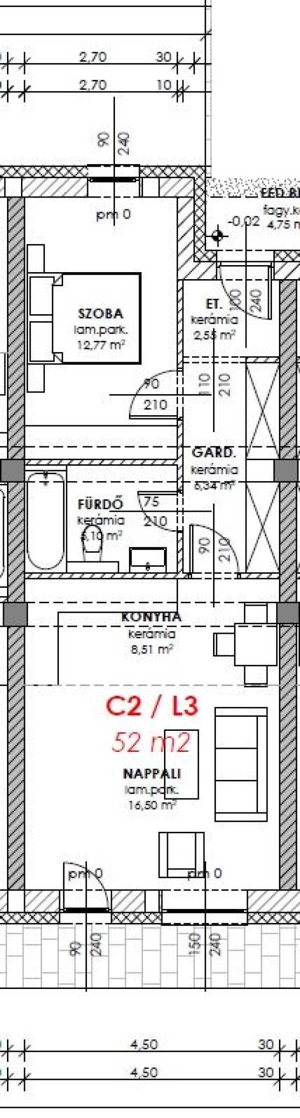 Gyermekváros Lakóparkban kínálunk megvételre lakásokat, Komárom belterületén, a Dunától délre, központ közeli, kisvárosias lakóterületen! Az épületegyüttes hatalmas, közel 23 ezer négyzetméter területen fekszik, körülötte zöldterülettel és magán kertekkel. Az épületegyüttes különböző egységekből áll, összesen 7 épületből, A, B és C jelöléssel. Az "A" jelű épület 4 egységből áll, melyben lakások, tárolók, üzletek és étterem kerül kialakításra. A B jelű lakóépület kétszintes, melyben a földszinten 4, az emeleten 5 lakás lesz. A C1 és C2 jelű épületek sorházi jelleggel, földszintes, kis privát kertes kialakítással, épületenként 8-8 lakásból állnak. Ennél az épületnél bővítési lehetőség is adott, a szélső lakásoknál. A lakóegységek itt is különböző méretűek, 32 és 53 nm közötti garzon és nappali + 1 hálószobás kialakítással. Mindegyik lakás kertkapcsolatos, a privát kertek a nappaliból nyíló teraszon keresztül közelíthetőek meg. Az épületrészeket összekötő helyiségek közös, saját tároló, illetve hulladéktároló funkciót kapnak. Ez a lakás a C2 épületben lévő 53,5 nm-es, L3-as lakás, amerikai-konyha-nappali, + szoba kialakítású, 16 nm-es terasszal, 33 nm-es előkerttel és 25 nm-es hátsó kertkapcsolattal. A lakások szerkezetkész állapotban kerülnek értékesítésre, mely a következőket tartalmazza: - bejárati ajtó - vizes blokkok kialakítása: fürdőszoba zuhanyzóval, villanybojlerrel, törölköző szárítós radiátorral, wc-vel és mosdóval, csap kiállásokkal - a lakások fűtéséről és hűtéséről hűtő-fűtő klíma fog gondoskodni - konnektorok és villanykapcsolók kiállásának kialakítása Az erkély, loggia és a földszinti lakásokhoz tartozó kertek nem képezik a vételár részét. Az épület külső homlokzata 15 cm-es EPS szigeteléssel lesz ellátva. A homlokzaton megjelennek még antracit színű acél zártszelvényből készülő korlátok, térelválasztó paravánok, melyekben homokfúvott biztonsági üveg elemeket helyeznek el. A nyílászárók hőszigetelt alumínium szerkezetűek, antracit színben. A lakáshoz megvásárolható saját parkoló, bruttó 1.200.000,-Ft.-ért, mely a lakópark magánútján található és sorompóval lesz elzárva. A teljes területen az épületek megközelítését szolgáló belső utak, járdák, parkolók, és zöldfelületek is megtervezettek. Közösségi terek lesznek kialakítva: játszótér árnyékolva, a felnőttek és gyerekek számára sportolásra alkalmas terület fitnesz eszközökkel, asztalitenisz asztallal, 50 m hosszú futófelület. A területen padok, asztalok, hulladékgyűjtők, ivókutak, és térvilágító lámpatestek kerülnek elhelyezésre. Ezen kívül a három személybejáró mellett zárható kerékpár tároló is kialakításra kerül. A zöldfelület beültetése is tervben van, melyben megtalálhatók lesznek lombhullató és örökzöld fák, cserjék, talajtakaró növények, gyepfelület, valamint függőleges zöldfalak futónövényekkel futtatva. A terület északkeleti oldalán gyümölcsfák lesznek telepítve, fűszerkerttel és pihenő padokkal. A kerítések mellett zaj és porfogóként, valamint levegőszűrőként sövényeket ültetnek. Az átadás várható időpontja 2026. II. negyedév. Bővebb tájékoztatásért kérem keressen bizalommal, részletes műszaki leírás rendelkezésemre áll, melyet személyes érdeklődés esetén bemutatok. Válassza ezt a remek lehetőséget akár beruházásként, hiszen nagy igény mutatkozik a kiadható kis lakások iránt. Természetesen családok új otthonaként is ideális választás. Adatbázisunkban számos eladó-kiadó ingatlan közül választhat. Személyre szabott ügyintézéssel, ügyvédi háttérrel állunk ügyfeleink rendelkezésére. Minden egy helyen, az ingatlan bemutatásától a birtokba adásig! Díjmentes és bankfüggetlen hitelügyintézés! Hitelminősítés a Fő téri irodánkban a hét minden napján. Várjuk hívását!