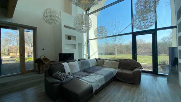 Ritka lehetőség a Duna mellett – privát birtok! Rácalmás Rózsadombján kínálom megvételre ezt a valóban ritka ingatlant. A 2015-ben épült modern, nádfedeles villa mindössze 50 méterre a Dunától, külterületen fekszik. Azoknak ajánlom ezt a különleges családi házat, akik csendre, privát térre és természetközeli luxusra vágynak. Ideális választás vállalkozóknak, alkotóknak vagy családoknak, akik a Duna-közeli nyugalomban szeretnének élni, távol a város zajától, mégis könnyen elérhető távolságban mindentől. A masszív vasbeton szerkezetű ház egy 6000 m²-es privát telken helyezkedik el, ahol a természet valóban a mindennapok része: a parkosított kertben gyümölcsfák, fűszerkertek és levendulás található, miközben gyakran fácánok, mókusok és rókák jelennek meg a környéken. Ahogy beléptem a területre és megláttam ezt a különleges otthont, megérintett a nyugalom és a pozitív energia. A kertben sétálva a friss levegőn és hallva a természet hangjait, az ember azonnal megérzi a nyugalmat és a feltöltődést. Az otthon hőszivattyús rendszerrel, padló- és falfűtéssel, napelemmel felszerelt, valamint riasztóval, kamerával és elektromos kapuval biztosított. A nappaliban fafűtéses kandalló is helyet kapott, valamint vegyestüzelésű kazánnal is fűthető az ingatlan. A ház félig okosrendszerrel rendelkezik, amely igény szerint teljesen automatizálható. A hatalmas üvegfelületeknek köszönhetően a nappalit és az étkezőt elárasztja a természetes fény. A belső terek modern eleganciája és a természet közelsége tökéletes harmóniát alkot. A házban van egy privát fitneszterem szaunával és fürdőszobával. A birtok különlegessége a privát biofürdőtó, a bevizsgált ivóvíz-minőségű fúrt kút, valamint a külső hangulatvilágítással ellátott ház. A területet geodéta szakember vizsgálta be: földmozgásmentes, stabil az egész terület. Ha olyan otthont keres, ahol a luxus, a modern technológia és a természet tökéletes harmóniában találkozik, ezt az ingatlant érdemes személyesen is megtapasztalnia. Az ilyen ingatlanokat nem egyszerűen megvásárolják – az emberek életminőséget választanak velük! Ha szeretné elsőként látni ezt a különleges otthont, hívjon most időpontért!