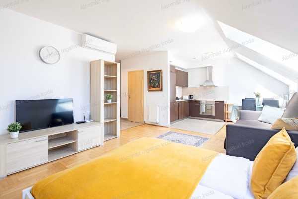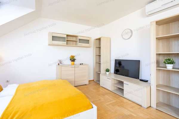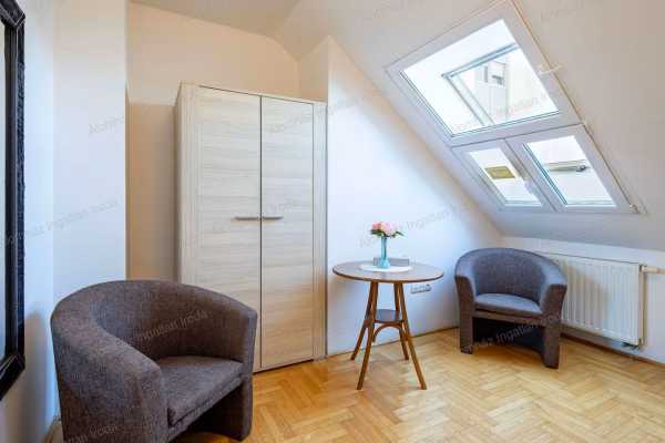 Eladó belső kétszintes lakás a Gozsdu Udvarnál – 57 m², légkondicionált, befektetésnek is kiváló Eladó Budapest VII. kerületében, a Gozsdu Udvar közvetlen közelében, a Király utcában egy 57 m²-es, belső kétszintes (duplex), felújított lakás egy liftes társasház 3. (legfelső) emeletén. Az ingatlan világos, praktikus elrendezésű, és elhelyezkedésének köszönhetően kiváló választás saját otthonnak vagy befektetésnek, hiszen a környék rendkívül keresett hosszú és rövid távú bérbeadásra is. Lakás elosztása Alsó szint amerikai konyhás nappali teljesen gépesített konyha (mosogatógép, sütő, főzőlap, elszívó, beépített hűtő és fagyasztó) külön WC kézmosóval praktikus tároló Felső szint tágas hálószoba dupla ablakkal kádas fürdőszoba WC-vel törölközőszárítós radiátor nagy ablak a természetes fényért A lakás mindkét szinten légkondicionálóval felszerelt, így egész évben kellemes hőmérséklet biztosított. Főbb jellemzők felújított állapot belső kétszintes lakás legfelső emelet liftes ház udvari, csendes fekvés nyugati tájolás külön fürdő és WC házközponti fűtés Költségek Közös költség: 50.000 Ft/hó, amely tartalmazza a házközponti fűtést a nyári hűtést a melegvíz előállítását Ezen felül csak az áram és a hidegvíz fogyasztás szerint fizetendő. Lokáció Az ingatlan Budapest egyik legpezsgőbb részén, a bulinegyed szívében található. Éttermek, kávézók, bárok, üzletek és kiváló közlekedési lehetőségek mind pár perc sétával elérhetők. Ideális választás belvárosi otthonnak értékálló befektetésnek hosszú vagy rövid távú kiadásra