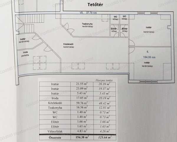 Gödöllő belvárosában 2006-ban épült, modern társasházban, befektetésnek is kiválóan alkalmas, 295nm hasznos alapterületű irodaház eladó! Elosztás: - Földszint (47,7 nm): előtér, akadálymentesített tárgyaló és mosdó - Emelet (121,41 nm): előtér, tárgyaló, titkárság, iroda, teakonyha, mosdó, fedett terasz - Tetőtér (125,64 nm): előtér, 3 irattár, iroda, közlekedő, teakonyha, 2 mosdó Műszaki adottságok: - 38-as PTH tégla falazat + 8 cm hőszigetelés, - monolit födém + 10cm üveggyapot, - Bramac betoncserép, - egyedi thermo üvegezésű borovi fenyő nyílászárók, - emeleten alu elektromos redőnyök, - 3 fázisú 3x40A áram - Hoval kondenzációs kazán radiátoros hőleadással, fan-coil mennyezeti klíma,10 kW-os hőszivattyú - riasztó és udvari kamerarendszer, - központi porszívó - hangszigetelt bőr tárgyalóajtó, rejtett LED világítások, - videókivetítő és hangszóró rendszer Az ár tartalmazza: - prémium minőségű Olaszországból hozott irodabútorok, - 2db tárgyalóasztal, - eredeti bőr tárgyalószékek, - 3db bőrfotel - kanapé dohányzóasztallal, - beépített bútorok, - recepciós pult, - irodaszekrény, irattároló beépített széffel, - 4 munkaállásos irodaasztalok, - konyhabútor, mosogatógép, hűtő A zárt udvarban 3db térkövezett kocsibeálló áll rendelkezésre. Ez a teljeskörűen felszerelt, prémium irodaház nem csak komfortos és modern munkakörnyezetet biztosít, hanem ideális befektetési lehetőség is. Irányár: 295.000.000.-Ft + Áfa Hivatkozási szám: 2518284. Megtekinthető telefonos időpont egyeztetés alapján: Sápi Balázs +36 20 772-2429 sapibalazs@godolloi.hu GÖDÖLLŐ INGATLANKÖZPONT - www.godolloi.hu: Gödöllő és környéke legnagyobb ingatlan választéka /Gödöllő, Szada, Veresegyház, Kistarcsa, Kerepes, Erdőkertes, Fót, Dunakeszi/ eladó-kiadó családi ház, telek, lakás! Ingatlan építés és felújítás!