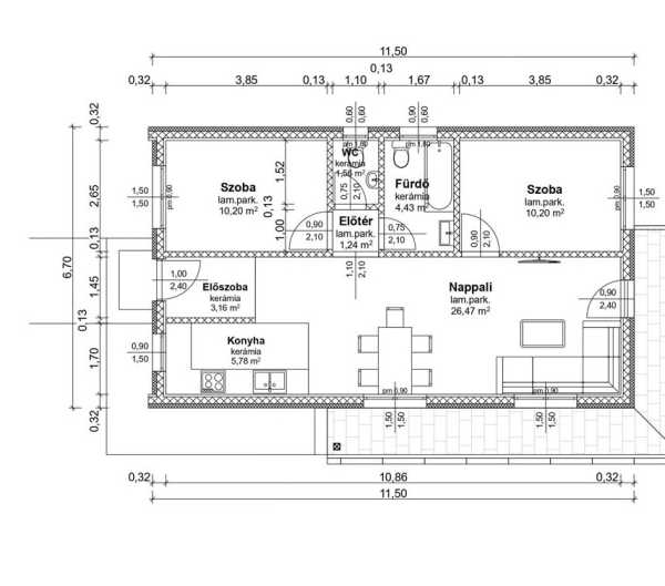 Az új építésű CSALÁDI HÁZAK tervezése átgondolt, több méretben, a kisebb méretű házaktól, egyedi igény szerint nagyobb házak is készülnek. A 260 nm-es telken épülő családi ház 30 cm-es téglából épül, alapozása sávalap 0,4 cm szélességben és 0,90 cm mélységben, talajnedvesség elleni szigeteléssel. Az aljzat hőszigetelése 10 cm EPS 100 lépésálló lemez beépítésével kerül kialakításra. A végleges Estrich aljzatbeton 6 cm vastagságban készül. A teherhordó és külső falak 30 cm-es kézi falazóelemből készülnek, belső oldalon gépi vakolattal. A válaszfalak 10 cm vastagságúak. A külső falakra 15 cm-es EPS 80 polisztirol lap hőszigetelést ragasztanak, melyre 1,5 mm-es diszperziós nemes vakolat kerül. A lábazatra 10 cm-es XPS hőszigetelés kerül, melyet választható színű műgyantás gyöngykavics lábazati vakolattal látnak el. Az épület fűtése és használati melegvíz ellátása, kondenzációs gáztüzelésű kombi gázkazán és égéstermék elvezető tartozékával, manuális termosztáttal, padlófűtéssel készül. A födémgerendák között cellulóz szigetelés készül 25 cm-es vastagságban. A tetőre beton cserép kerül, Terrán Renova alapcserép választható antracit és téglavörös színben. Horganyzott ereszcsatorna rendszer készül. A nyílászárók műanyagok, fokozottan hőszigetelt, 6 légkamrás, 3 rétegű üvegezéssel, acél betétes műanyag szerkezettel, fehér színben. Redőny előkészítés igény szerint rendelhető. A fürdőszobába 210 cm, mosdóba 160 cm magasságig csempeburkolat, a padlóra terv szerint járólap vagy laminált padló kerül. A szaniterek egyedi megállapodás szerint választhatóak. A festés színe egyénileg választható, a falakon pasztellszínű diszperziós falfesték, a fa felületeken lazúr festéssel. Az ELADÓ családi ház alapterülete 63 nm. Elrendezése praktikus, helyiségei: - 1 előszoba, - 1 nappali, - 1 konyha - 2 külön nyíló hálószoba, - 1 közlekedő, - 1 fürdőszoba - 1 wc. Válassza ezt a magas műszaki színvonalú, minden igényt kielégítő, korszerű családi házat. A ház kivitelezési ára nem tartalmazza a telek árát, a tereprendezési munkálatokat, a közműveket. Viszont felárral kérhető a tereprendezés, az épület körüli járda elkészítése, térburkolások, kertépítés, riasztó rendszer kiépítése, beüzemelése, sőt még konyhabútor gyártása és beszerelése is. Átadás garantáltan, a szerződéskötéstől számítva maximum 6 hónapon belül várható. A Tatabánya belterületén lévő 517 nm-es telek vételára 22.860.000,- Ft A közművek a telek előtt megtalálhatóak. A telek területére vonatkozó szabályozási terv alapján Lke-2-es jelű, kertvárosias lakóterület besorolású, melyre az építmény elhelyezés feltételei a következők: - a beépítés módja oldalhatáros, - a megengedett legnagyobb beépítettség 30%, - a megengedett legnagyobb beépítési magasság 4,5 m, - a legkisebb kialakítható telek méret 500 nm, - a kialakítandó legkisebb zöldfelület 50%. Adatbázisunkban számos eladó-kiadó ingatlan közül választhat. Személyre szabott ügyintézéssel, ügyvédi háttérrel állunk ügyfeleink rendelkezésére. 15 éves értékesítői és vezetői tapasztalat. Minden egy helyen, az ingatlan bemutatásától a kulcsátadásig! Hitelminősítés a Fő téri irodánkban a hét minden napján. Legyen közös a sikerünk!