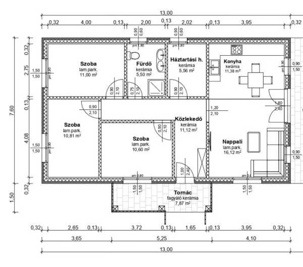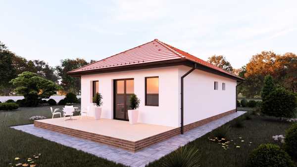 Az új építésű CSALÁDI HÁZAK tervezése átgondolt, több méretben, a kisebb méretű házaktól, egyedi igény szerint nagyobb házak is készülnek. A 743 nm-es telken épülő családi ház 30 cm-es téglából épül, alapozása sávalap 0,4 cm szélességben és 0,90 cm mélységben, talajnedvesség elleni szigeteléssel. Az aljzat hőszigetelése 10 cm EPS 100 lépésálló lemez beépítésével kerül kialakításra. A végleges Estrich aljzatbeton 6 cm vastagságban készül. A teherhordó és külső falak 30 cm-es kézi falazóelemből készülnek, belső oldalon gépi vakolattal. A válaszfalak 10 cm vastagságúak. A külső falakra 15 cm-es EPS 80 polisztirol lap hőszigetelést ragasztanak, melyre 1,5 mm-es diszperziós nemes vakolat kerül. A lábazatra 10 cm-es XPS hőszigetelés kerül, melyet választható színű műgyantás gyöngykavics lábazati vakolattal látnak el. Az épület fűtése és használati melegvíz ellátása, kondenzációs gáztüzelésű kombi gázkazán és égéstermék elvezető tartozékával, manuális termosztáttal, padlófűtéssel készül. A födémgerendák között cellulóz szigetelés készül 25 cm-es vastagságban. A tetőre beton cserép kerül, Terrán Renova alapcserép választható antracit és téglavörös színben. Horganyzott ereszcsatorna rendszer készül. A nyílászárók műanyagok, fokozottan hőszigetelt, 6 légkamrás, 3 rétegű üvegezéssel, acél betétes műanyag szerkezettel, fehér színben. Redőny előkészítés igény szerint rendelhető. A fürdőszobába 210 cm, mosdóba 160 cm magasságig csempeburkolat, a padlóra terv szerint járólap vagy laminált padló kerül. A szaniterek egyedi megállapodás szerint választhatóak. A festés színe egyénileg választható, a falakon pasztellszínű diszperziós falfesték, a fa felületeken lazúr festéssel. Az ELADÓ családi ház alapterülete 82 nm. Elrendezése praktikus, helyiségei: - 1 nappali, - 1 konyha-étkező, - 3 külön nyíló hálószoba, - 1 közlekedő, - 1 fürdőszoba - 1 háztartási helyiség. Válassza ezt a magas műszaki színvonalú, minden igényt kielégítő, korszerű családi házat. A ház kivitelezési ára nem tartalmazza a telek árát, a tereprendezési munkálatokat, a közműveket. Viszont felárral kérhető a tereprendezés, az épület körüli járda elkészítése, térburkolások, kertépítés, riasztó rendszer kiépítése, beüzemelése, sőt még konyhabútor gyártása és beszerelése is. A Dad belterületén lévő 743 nm-es telek vételára 5.500.000,- Ft A közművek az utcában megtalálhatóak. Az ELADÓ dadi belterületi telek területére vonatkozó szabályozási terv alapján Lf-1 jelű, Falusias lakóterület besorolású, melyre az építmény elhelyezés feltételei a következők: - beépítési módja: oldalhatáron álló, - a legkisebb kialakítható telek területe 700 nm, - a legnagyobb beépíthetősége 30%, - a legkisebb zöldfelület aránya 40%, - a legnagyobb épület magassága 5 méter. Átadás garantáltan, a szerződéskötéstől számítva maximum 6 hónapon belül várható. Adatbázisunkban számos eladó-kiadó ingatlan közül választhat. Személyre szabott ügyintézéssel, ügyvédi háttérrel állunk ügyfeleink rendelkezésére. 15 éves értékesítői és vezetői tapasztalat. Minden egy helyen, az ingatlan bemutatásától a kulcsátadásig! Hitelminősítés a Fő téri irodánkban a hét minden napján. Legyen közös a sikerünk!