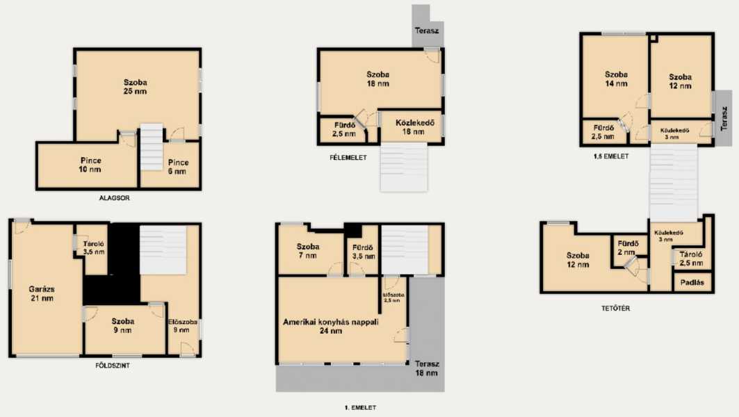 Eladó egy kivételes lehetőségeket kínáló családi ház Tatán, a város jó környékén, közel az Öreg tóhoz. Az eladó családi ház ideális választás több generáció számára, valamint befektetőknek is kiváló lehetőséget nyújt. Az eladó családi ház téglából épült, masszív és időtálló szerkezetű. Szinteltolásos kialakítása kényelmet és praktikumot biztosít, minden szinten tágas, világos terek jellemzik. Az eladó családi ház hat különálló szinttel rendelkezik, ami még nagyobb rugalmasságot biztosít a különféle felhasználási lehetőségekhez. Egy részen alápincézett, amely számos lehetőséget kínál, legyen szó tárolásról, műhely kialakításáról vagy akár egy wellnessrészleg létrehozásáról. Az eladó családi ház alapterülete 147 négyzetméter, a telek területe pedig 360 négyzetméter. A házon belül már négy lakás kialakításra került. Az alagsorban egy 25 nm-es helyiség valamint két pince rész is található, így akár mosókonyhaként vagy raktárként is használható. A földszinten található egy kisebb szoba amely 9 nm, tároló, előszoba, és ami elengedhetetlenebb, egy 21 nm-es garázs. A garázs hátulról is megközelíthető, így külön kis üzlethelyiség megnyitására is van mód. A félemeleten hasonló az elrendezés, egy szoba, amely 18 nm-es, egy fürdő, és egy kis terasz is helyet kapott. Az első emeleten egy hatalmas 24 nm-es amerikai konyhás nappali van, amely a nagy tágas ablakoknak köszönhetően rendkívül világos. Ezenkívül kialakításra került egy hálószoba és egy fürdőszoba. Ehhez az emelethez tartozik egy 18 nm-es terasz, ahova kiülve reggeli kávénkat -teánkat elfogysztva máris jobban indul a napunk. A tetőtér és az első emlet közötti szinten két szoba, fürdő és egy terasz kínálja kényelmünket. A tetőtér egy szobával rendelkezik valamint egy kisebb fürdővel. Itt található ezen kívül egy beépíthető padlástér, és egy tároló. Az eladó családi ház jelenlegi állapota jó, a felújítási munkálatokat már megkezdték. A korszerűsített víz- és villanyvezetékek biztosítják a modern igényeknek megfelelő infrastruktúrát. A fűtés gázkazánnal történik, és a ház csatornahálózatra is csatlakoztatva van. A szobákban parketta van, a többi helyiség járólappal burkolt. Elhelyezkedésének köszönhetően az ingatlan különösen vonzó: Pár percre sétára a csodálatos Öreg- tóhoz érünk. Az M1 autópálya 10 perc alatt megközelíthető. Az eladó családi ház sokoldalúan hasznosítható: család otthonaként, több külön lakásként vagy akár egy kis panzióként is funkcionálhat, így kiváló befektetési lehetőséget jelent azok számára, akik kiadásban vagy turisztikai célú hasznosításban gondolkodnak. Ne hagyja ki ezt a páratlan ajánlatot! További információért és megtekintésért keressen bizalommal! Adatbázisunkban számos eladó-kiadó ingatlan közül választhat. Személyre szabott ügyintézéssel, ügyvédi háttérrel állunk ügyfeleink rendelkezésére. 15 éves értékesítői és vezetői tapasztalat. Minden egy helyen, az ingatlan bemutatásától a kulcsátadásig! Hitelminősítés a Fő téri irodánkban a hét minden napján. Legyen közös a sikerünk!