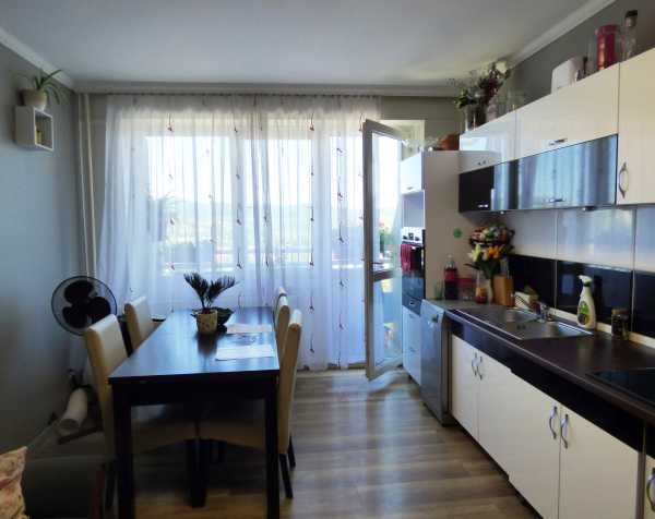 Az Eladó lakás 55 nm-es, egy tízemeletes épület 4. emeletén található. 2024-ben felújításon esett át, melynek során a nagyobb szobából a tulajdonos amerikai konyhás nappalit alakított ki. Az a helyiség, ami eredetileg konyha szerepét töltötte be, most dolgozó szobának van berendezve. Az Eladó lakás szobáiban a burkolat laminált parketta, a falak festettek. A fürdőszoba és a wc külön helyiségben van, a padló járólappal fedett, a falak csempe borítást kaptak. Minden helyiségben műanyag nyílászáró került beépítésre, a 2 kisebb szobában redőnnyel vannak felszerelve. A fűtést a téli hónapokban távhő szolgáltató biztosítja. Az Eladó lakásban a konyhabútor, a kerámia lapos főzőlap, sütő, mikrohullámú sütő, mosógép, mind a vételár részét képezi. Sikeres eladás esetén a többi bútor közös megegyezés szerint a lakásban maradhat! Az Eladó lakás erkélyes, ahonnan nagyon szép panoráma nyílik a hegyoldalra. A 10 emeletes épületben lift működik, rendelkezésre áll egy közös tároló, valamint utcai parkolásra van lehetőség. A lépcsőház zárt, rendezett, tiszta. Az infrastruktúra nagyon jó, a közelben minden kiszolgáló egység ( Bölcsőde, óvoda, iskolák, Kormányhivatal, üzletek, buszmegálló stb..) megtalálható. Családok számára és befektetés céljából is kiváló választás! Adatbázisunkban számos eladó-kiadó ingatlan közül választhat. Személyre szabott ügyintézéssel, ügyvédi háttérrel állunk ügyfeleink rendelkezésére. 15 éves értékesítői és vezetői tapasztalat. Minden egy helyen, az ingatlan bemutatásától a kulcsátadásig! Hitelminősítés a Fő téri irodánkban a hét minden napján. Legyen közös a sikerünk!