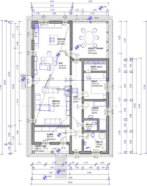 Kocs nyugodt, kertvárosias részén, rendezett családi házas övezetben kínálunk megvételre egy 151 négyzetméteres, könnyűszerkezetes családi házat, amely egy 1744 négyzetméteres, sík, jól kihasználható telken fekszik. Az eladó családi ház jelenlegi készültségi foka 41%, így ideális választás azok számára, akik egy már előkészített szerkezetből saját elképzeléseik szerint szeretnének otthont kialakítani – kompromisszumok nélkül, saját ízlésük szerint. Az eladó ház megtervezésénél a funkcionalitás és a tágas terek voltak a fő szempontok. A belső elrendezés praktikus: a tágas előszobából és közlekedőből jól elkülönülnek a nappali élettér és a hálózóna. A nappali, étkező és konyha egy légtérben helyezkedik el, mégis jól tagolt, természetes fényben bővelkedő helyiségeket alkotva. A hálószobához külön gardrób tartozik, a háztartási helyiség és a különálló WC pedig növeli a kényelmet. A ház hátsó részén fedett terasz biztosítja a kellemes kinti időtöltést, amely a nagy méretű teleknek köszönhetően akár kerti pihenővel vagy játszótérrel is kiegészíthető. Az eladó családi ház műszaki alapjai megbízhatóak: sávalapozással, vasbeton fejgerendával és vasalt betonaljzattal készült. A könnyűszerkezetes falszerkezet 10/15-ös fa vázból áll, amelyet 12 cm-es hőszigetelés egészít ki, így a végleges ház energiatakarékos, fenntartható otthonná válhat. A padlózat alatt AUSTROTHERM hőszigetelés került beépítésre. A fűtés korszerű hőszivattyús rendszerre lett előkészítve, amely garantálja a modern, gazdaságos üzemeltetést. Az eladó családi ház elhelyezkedése rendkívül kedvező: a közelben megtalálhatóak a mindennapi élethez szükséges intézmények – óvoda, iskola, élelmiszerbolt és buszmegálló is könnyen elérhető. Kocs Tata és Komárom között helyezkedik el, az M1 autópálya közelsége pedig kényelmes közlekedést biztosít akár Budapest, akár Győr irányába. Ez az ingatlan ideális választás lehet mindazoknak, akik szeretnének egy tágas, nyugodt környezetben elhelyezkedő, mégis jól megközelíthető családi házban élni, amelyet saját elképzeléseik szerint fejezhetnek be. Adatbázisunkban számos eladó-kiadó ingatlan közül választhat. Személyre szabott ügyintézéssel, ügyvédi háttérrel állunk ügyfeleink rendelkezésére. 15 éves értékesítői és vezetői tapasztalat. Minden egy helyen, az ingatlan bemutatásától a kulcsátadásig! Hitelminősítés a Fő téri irodánkban a hét minden napján. Legyen közös a sikerünk!