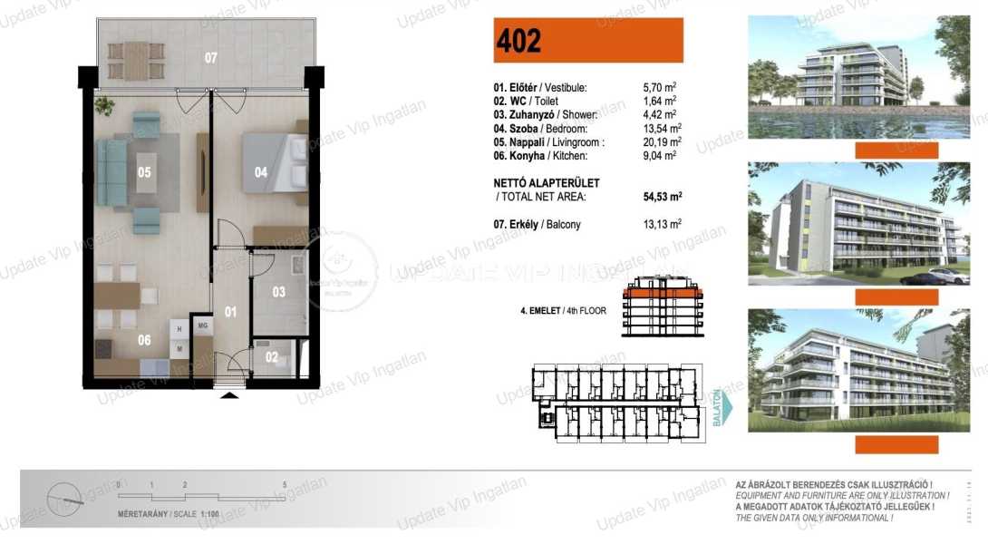 AZ UPDATE VIP INGATLANIRODA KINÁLATÁBÓL: SIÓFOK SZÉPLAK/EZÜSTPART HATÁRÁN, ÚJÉPÍTÉSŰ, VÍZPARTI, BALATONI PANORÁMÁS, MEDENCÉS LAKÁS ELADÓ! AZONNAL BIRTOKBAVEHETŐ! A hirdetésben szereplő lakás paraméterei: Negyedik emeleti lakás -Lakótér: 53m2 -Terasz: 12m2 -Újépítés -Közvetlen vízparti elhelyezkedés! -Minőségi tervezés, kivitelezés! -Lakás minősítés (5% Áfa) Külön megvásárolható: Felszíni gépkocsi beállóhely (~11,25m2): 4.9MFt Siófok ezen hangulatos, érintetlen panorámás részén, a gondos és alapos tervezői munka eredményeként kerül megvalósításra a közvetlen vízparti 71 lakásos, 5 emeletes, újépítésű társasház. (Az emeletek kényelmes megközelítését 13 személyes lift szolgálja ki.) A tervezés során fontos szempont volt a praktikum, a használhatóság, a fenntarthatóság, melyet a korábban értékesített 750 siófoki lakás és nyaraló tervezésének és értékesítésének tapasztalata szült, megannyi vásárlói visszajelzés alapján. A társasház második otthont kínál a Balaton szerelmeseinek, ahol akár egész évben élvezhetik a korszerű apartmanok kényelmét és a természet közelségét, amely ugyanakkor egy kivételesen értékálló befektetés is! A társasház tetején korlátozott számú exkluzív panorámás grill és napozó tetőterasz kerül kialakításra (ahol egyedi vízvétel és áramvétel kerül kialakításra). -Fűtés-Hűtés: LG Multi V-5 hőszivattyús rendszer mely a 2023-as év energia szabványainak megfelelően, kivételesen energiahatékony üzemeltetést tesz lehetővé. -A szobákba, nappalikba felszerelt beltéri egységek léghűtést és légfűtést biztosítanak, melynek köszönhetően rendkívül gyorsan hűtik le vagy fűtik fel a helyiségeket. -Szigetelés: 15 cm vastag külső hőszigetelés -Nyílászárók: 3 rétegű üvegezéssel készülnek, külső oldalon antracit színben. -A lakáselválasztó falak fokozott hangszigetelésűek, plusz a födémekben 4 cm vastag hő/hangszigetelő táblák akadályozzák meg a függőleges irányú hangterjedést. -A lakások nappalijából és hálószobáiból a korlátlan panoráma élvezete rozsdamentes, szálcsiszolt oszlopokkal, kapaszkodókkal, ragasztott biztonsági üveg korláttal biztosított. -A több generációs családok kikapcsolódása érdekében, a beruházás keretein belül gyermekjátszótér és kültéri medencék állnak rendelkezésre tulajdonosok számára. -Az ingatlan előtt húzódó több mint 3 km hosszú szabadstrand, további gondozott zöldterületekkel, parti sétányokkal, sportolási lehetőséget kínáló kölcsönző helyekkel, valamint igényesen kialakított büfékkel szolgálja ki az itt nyaralók igényeit. -A lakópark területére a biztonság érdekében egyedi azonosítás után lehet majd csak belépni. Bővebb információért, megtekintés egyeztetésért, kérem keressen a megadott elérhetőségeimen! UPDATE VIP INGATLAN IRODA további szolgáltatásai: Energetikai tanúsítvány készítés, Díjmentes-bank semleges hitelügyintézés, Ügyvédi háttér, Közjegyző, Földhivatali ügyintézés, Építész, Lakberendező.