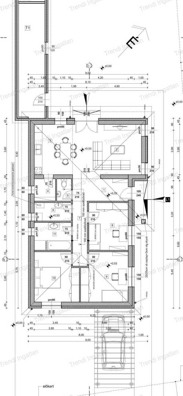 Győr szomszédságásban,Győrújfalun 93,66 nm-es nappali + 3 szobás ikerház 517 nm-es telekrésszel eladó. Az ingatlanban amerikai konyhás nappali, 3 szoba, fürdőszoba, külön WC, kamra, háztartási helyiség, közlekedő, előtér található. A házhoz 16,98 nm-es tároló tartozik. A két ingatlan külön megközelíthető, a házakat csak a tárolók kötik össze. A ház 30-as falazóelemből, 15 cm-es homlokzati szigeteléssel, 3 rétegű műanyag nyílászárókkal kerül kivitelezésre. Az ingatlan fűtését és melegvíz ellátását kondenzációs kazán biztosítja padlófűtéssel. Az ár tartalmazza a redőny és klíma előkészítését. Felár ellenében hőszivattyús fűtés, kerti csap, riasztó előkészítés, térkövezés kérhető. Igény esetén garázs is kérhető. Az átadás várható ideje: 2025 év vége Az ingatlan fűtéskész ára: 84.900.000 Ft, mely tartalmazza a telek árát is. Kulcsrakész befejezés kérhető. Ha Győr szomszédságában, kertes otthonban szeretne élni, ez a ház Önre vár! Bővebb információkért forduljon hozzám bizalommal. Hétköznap és hétvégén is várom hívását! Díjmentes hitel és CSOK ügyintézéssel állunk rendelkezésére. A hirdetésben feltüntetett képek illusztrációk.