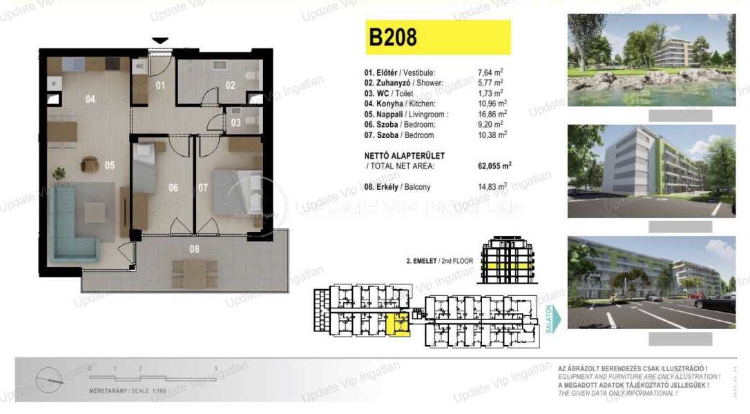 AZ UPDATE VIP INGATLANIRODA KINÁLATÁBÓL: SIÓFOK EZÜSTPART/SZÉPLAK HATÁRÁN, ÚJ ÉPÍTÉSŰ, VÍZPARTI, PANORÁMÁS, MEDENCÉS LAKÁS ELADÓ! AZONNAL BIRTOKBA VEHETŐ! A hirdetésben szereplő lakás paraméterei: Második emeleti lakás -Lakótér: 61m2 -Erkély/Terasz: 13m2 -Újépítés -Közvetlen vízparti elhelyezkedés! -Minőségi tervezés, kivitelezés! -Lakás minősítés (5% Áfa) Külön megvásárolható: Felszíni gépkocsi beállóhely (11,25m2): 4.9MFt Saját tároló (3.48m2): 4.9MFt A lakások közvetlen vízparti elhelyezkedése mellett az igényes tervezés, a minőségi kivitelezés a remek kihasználhatóság és értékállóság is biztosított. Az ötemeletes apartmanház a Balatonra merőlegesen helyezkedik el, így biztosítva a lakásokból az örök balatoni panorámát boldog tulajdonosainak. A lakások nappalijából és hálószobáiból a korlátlan panoráma élvezetét ragasztott biztonsági üvegtáblás terasz korlát teszi még zavartalanabbá. A társasház tetején korlátozott számú exkluzív panorámás grill és napozó tetőterasz kerül kialakításra, egyedi vízvétel és áramvétel biztosítása mellet. Rövid műszaki leírás: -A beépítendő anyagok kiválasztásánál a magas minőség elengedhetetlen szempont volt. -Fokozott hangszigeteléssel ellátott lakáselválasztó falak -15 cm vastag külső hőszigetelés -A födémekben 4 cm vastag hő/hangszigetelő táblák Lift: 2 db 8 és 1db 13 személyes lift Nyílászárók: 3 rétegű üvegezés, külső oldalon antracit színben -Fűtés-Hűtés: LG Multi V-5 hőszivattyús rendszer mely a 2024-es év energia szabványainak megfelelően, kivételesen energiahatékony üzemeltetést tesz lehetővé. -A szobákba, nappalikba felszerelt beltéri egységek léghűtést és légfűtést biztosítanak, melynek köszönhetően rendkívül gyorsan hűtik le vagy fűtik fel a helyiségeket. -A több generációs családok kikapcsolódása érdekében, a beruházás keretein belül gyermekjátszótér és kültéri medencék állnak rendelkezésre tulajdonosok számára. -Az ingatlan előtt húzódó több mint 3 km hosszú szabadstrand, további gondozott zöldterületekkel, parti sétányokkal, sportolási lehetőséget kínáló kölcsönző helyekkel, valamint igényesen kialakított büfékkel szolgálja ki az itt nyaralók igényeit. -A lakópark területére a biztonság érdekében egyedi azonosítás után lehet majd csak belépni. Bővebb információért, megtekintés egyeztetésért, kérem keressen a megadott elérhetőségeimen! UPDATE VIP INGATLAN IRODA további szolgáltatásai: Energetikai tanúsítvány készítés, Díjmentes-bank semleges hitelügyintézés, Ügyvédi háttér, Közjegyző, Földhivatali ügyintézés, Építész, Lakberendező.