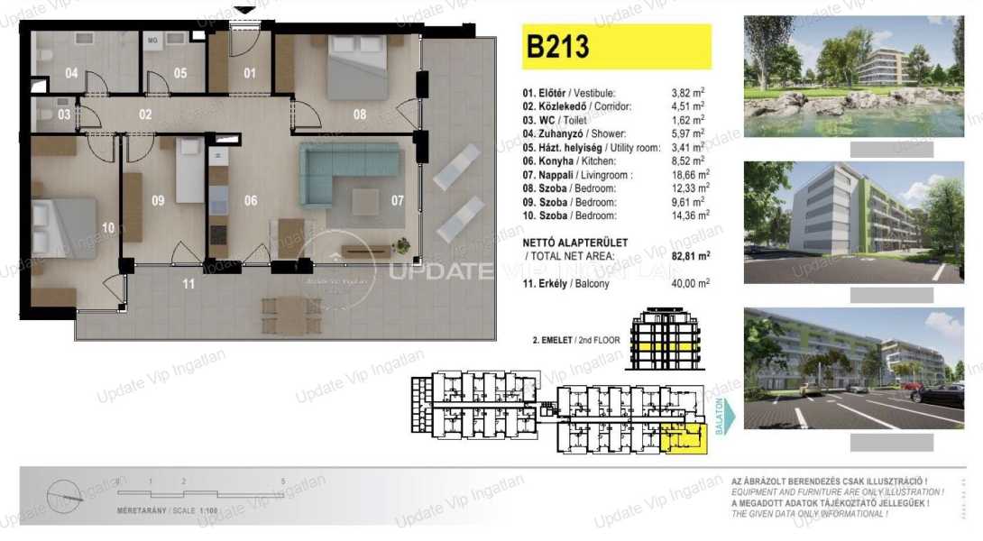 Az Update Vip Ingatlaniroda kínálatából: SIÓFOK EZÜSTPART/SZÉPLAK HATÁRÁN, ÚJ ÉPÍTÉSŰ, VÍZPARTI, PANORÁMÁS, MEDENCÉS LAKÁS ELADÓ! AZONNAL BIRTOKBA VEHETŐ! A hirdetésben szereplő lakás paraméterei: Második emeleti lakás -Lakótér: 82.81m2 -Erkély/Terasz: 40m2 -Újépítés -Közvetlen vízparti elhelyezkedés! -Minőségi tervezés, kivitelezés! -Lakás minősítés (5% Áfa) Külön megvásárolható: Felszíni gépkocsi beállóhely (11,25m2): 4.9MFt Saját tároló (3.48m2): 4.9MFt A lakások közvetlen vízparti elhelyezkedése mellett az igényes tervezés, a minőségi kivitelezés a remek kihasználhatóság és értékállóság is biztosított. Az ötemeletes apartmanház a Balatonra merőlegesen helyezkedik el, így biztosítva a lakásokból az örök balatoni panorámát boldog tulajdonosainak. A lakások nappalijából és hálószobáiból a korlátlan panoráma élvezetét ragasztott biztonsági üvegtáblás terasz korlát teszi még zavartalanabbá. A társasház tetején korlátozott számú exkluzív panorámás grill és napozó tetőterasz kerül kialakításra, egyedi vízvétel és áramvétel biztosítása mellet. Rövid műszaki leírás: -A beépítendő anyagok kiválasztásánál a magas minőség elengedhetetlen szempont volt. -Fokozott hangszigeteléssel ellátott lakáselválasztó falak -15 cm vastag külső hőszigetelés -A födémekben 4 cm vastag hő/hangszigetelő táblák Lift: 2 db 8 és 1db 13 személyes lift Nyílászárók: 3 rétegű üvegezés, külső oldalon antracit színben -Fűtés-Hűtés: LG Multi V-5 hőszivattyús rendszer mely a 2024-es év energia szabványainak megfelelően, kivételesen energiahatékony üzemeltetést tesz lehetővé. -A szobákba, nappalikba felszerelt beltéri egységek léghűtést és légfűtést biztosítanak, melynek köszönhetően rendkívül gyorsan hűtik le vagy fűtik fel a helyiségeket. -A több generációs családok kikapcsolódása érdekében, a beruházás keretein belül gyermekjátszótér és kültéri medencék állnak rendelkezésre tulajdonosok számára. -Az ingatlan előtt húzódó több mint 3 km hosszú szabadstrand, további gondozott zöldterületekkel, parti sétányokkal, sportolási lehetőséget kínáló kölcsönző helyekkel, valamint igényesen kialakított büfékkel szolgálja ki az itt nyaralók igényeit. -A lakópark területére a biztonság érdekében egyedi azonosítás után lehet majd csak belépni. Bővebb információért, megtekintés egyeztetésért, kérem keressen a megadott elérhetőségeimen! UPDATE VIP INGATLAN IRODA további szolgáltatásai: Energetikai tanúsítvány készítés, Díjmentes-bank semleges hitelügyintézés, Ügyvédi háttér, Közjegyző, Földhivatali ügyintézés, Építész, Lakberendező.