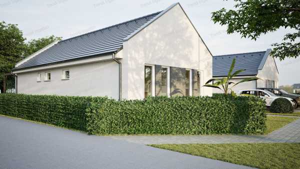REMEK AJÁNLAT! KULCSRAKÉSZ HÁZ hőszivattyús fűtéssel eladó! Nagyszentjánoson, az Erdőszél Lakóparkban 813 nm-es telken 84,01 nm-es, nappali + 3 szobás könnyűszerkezetes ház 25,94 nm-es terasszal, hőszivattyús fűtéssel kulcsrakészen eladó. A remek elosztású házban amerikai konyhás nappali, 3 szoba, fürdőszoba, külön WC, háztartási helyiség, kamra, előtér, közlekedő található. A nappaliból 25,94 nm-es kertkapcsolatos terasz nyílik. A szobák laminált parkettával, a többi helyiség kerámia lappal burkolt. A kulcsrakész ár nem tartalmazza a konyhabútort. Az épület hagyományos és könnyűszerkezetes épületszerkezetekkel épül (beton sávalapok, faszerkezetű teherhordó falak, fa rácsostartó födém és tetőszerkezet). A válaszfalak favázas, normál gipszkarton szerkezettel készülnek 15 cm szerkezeti vastagsággal. A ház 10 cm-es homlokzati hőszigeteléssel épül. A hőszigetelt nyílászárók műanyag szerkezetűek, fehér színűek. Az ingatlan fűtéséről hőszivattyú gondoskodik padlófűtéssel. Kulcsrakész átadás várható ideje: 2026 nyár Kulcsrakész ár: 79.900.000 Ft, mely tartalmazza a telek árát is. Kulcsrakész ár nem tartalmazza a konyhabútort. Bővebb információkért forduljon hozzám bizalommal. Hétköznap és hétvégén is várom hívását! Díjmentes, bankfüggetlen hitelügyintézéssel állunk rendelkezésére. A hirdetésben feltüntetett képek illusztrációk.