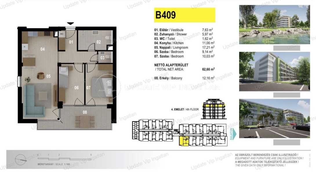 AZ UPDATE VIP INGATLANIRODA KINÁLATÁBÓL: SIÓFOK EZÜSTPART/SZÉPLAK HATÁRÁN, ÚJ ÉPÍTÉSŰ, VÍZPARTI, PANORÁMÁS, MEDENCÉS LAKÁS ELADÓ! AZONNAL BIRTOKBA VEHETŐ! A hirdetésben szereplő lakás paraméterei: Negyedik emeleti lakás -Lakótér: 61m2 -Erkély/Terasz: 11m2 -Újépítés -Közvetlen vízparti elhelyezkedés! -Minőségi tervezés, kivitelezés! -Lakás minősítés (5% Áfa) Külön megvásárolható: Felszíni gépkocsi beállóhely (11,25m2): 4.9MFt Saját tároló (3.48m2): 4.9MFt A lakások közvetlen vízparti elhelyezkedése mellett az igényes tervezés, a minőségi kivitelezés a remek kihasználhatóság és értékállóság is biztosított. Az ötemeletes apartmanház a Balatonra merőlegesen helyezkedik el, így biztosítva a lakásokból az örök balatoni panorámát boldog tulajdonosainak. A lakások nappalijából és hálószobáiból a korlátlan panoráma élvezetét ragasztott biztonsági üvegtáblás terasz korlát teszi még zavartalanabbá. A társasház tetején korlátozott számú exkluzív panorámás grill és napozó tetőterasz kerül kialakításra, egyedi vízvétel és áramvétel biztosítása mellet. Rövid műszaki leírás: -A beépítendő anyagok kiválasztásánál a magas minőség elengedhetetlen szempont volt. -Fokozott hangszigeteléssel ellátott lakáselválasztó falak -15 cm vastag külső hőszigetelés -A födémekben 4 cm vastag hő/hangszigetelő táblák Lift: 2 db 8 és 1db 13 személyes lift Nyílászárók: 3 rétegű üvegezés, külső oldalon antracit színben -Fűtés-Hűtés: LG Multi V-5 hőszivattyús rendszer mely a 2024-es év energia szabványainak megfelelően, kivételesen energiahatékony üzemeltetést tesz lehetővé. -A szobákba, nappalikba felszerelt beltéri egységek léghűtést és légfűtést biztosítanak, melynek köszönhetően rendkívül gyorsan hűtik le vagy fűtik fel a helyiségeket. -A több generációs családok kikapcsolódása érdekében, a beruházás keretein belül gyermekjátszótér és kültéri medencék állnak rendelkezésre tulajdonosok számára. -Az ingatlan előtt húzódó több mint 3 km hosszú szabadstrand, további gondozott zöldterületekkel, parti sétányokkal, sportolási lehetőséget kínáló kölcsönző helyekkel, valamint igényesen kialakított büfékkel szolgálja ki az itt nyaralók igényeit. -A lakópark területére a biztonság érdekében egyedi azonosítás után lehet majd csak belépni. Bővebb információért, megtekintés egyeztetésért, kérem keressen a megadott elérhetőségeimen! UPDATE VIP INGATLAN IRODA további szolgáltatásai: Energetikai tanúsítvány készítés, Díjmentes-bank semleges hitelügyintézés, Ügyvédi háttér, Közjegyző, Földhivatali ügyintézés, Építész, Lakberendező.