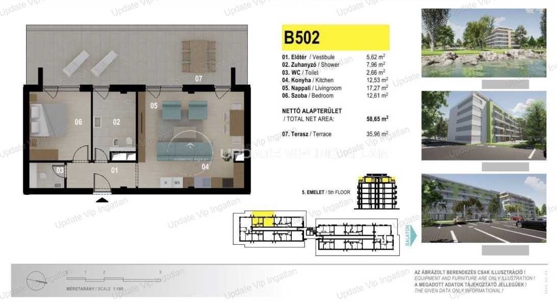 AZ UPDATE VIP INGATLANIRODA KINÁLATÁBÓL: SIÓFOK SZÉPLAK/EZÜSTPART HATÁRÁN, ÚJ ÉPÍTÉSŰ, VÍZPARTI, PANORÁMÁS, MEDENCÉS LAKÁS ELADÓ! AZONNAL BIRTOKBA VEHETŐ! A hirdetésben szereplő lakás paraméterei: Ötödik emeleti lakás -Lakótér: 54m2 -Erkély/Terasz: 34m2 -Újépítés -Közvetlen vízparti elhelyezkedés! -Minőségi tervezés, kivitelezés! -Lakás minősítés (5% Áfa) Külön megvásárolható: Felszíni gépkocsi beállóhely (11,25m2): 4.9MFt Saját tároló (3.48m2): 4.9MFt A lakások közvetlen vízparti elhelyezkedése mellett az igényes tervezés, a minőségi kivitelezés a remek kihasználhatóság és értékállóság is biztosított. Az ötemeletes apartmanház a Balatonra merőlegesen helyezkedik el, így biztosítva a lakásokból az örök balatoni panorámát boldog tulajdonosainak. A lakások nappalijából és hálószobáiból a korlátlan panoráma élvezetét ragasztott biztonsági üvegtáblás terasz korlát teszi még zavartalanabbá. A társasház tetején korlátozott számú exkluzív panorámás grill és napozó tetőterasz kerül kialakításra, egyedi vízvétel és áramvétel biztosítása mellet. Rövid műszaki leírás: -A beépítendő anyagok kiválasztásánál a magas minőség elengedhetetlen szempont volt. -Fokozott hangszigeteléssel ellátott lakáselválasztó falak -15 cm vastag külső hőszigetelés -A födémekben 4 cm vastag hő/hangszigetelő táblák Lift: 2 db 8 és 1db 13 személyes lift Nyílászárók: 3 rétegű üvegezés, külső oldalon antracit színben -Fűtés-Hűtés: LG Multi V-5 hőszivattyús rendszer mely a 2024-es év energia szabványainak megfelelően, kivételesen energiahatékony üzemeltetést tesz lehetővé. -A szobákba, nappalikba felszerelt beltéri egységek léghűtést és légfűtést biztosítanak, melynek köszönhetően rendkívül gyorsan hűtik le vagy fűtik fel a helyiségeket. -A több generációs családok kikapcsolódása érdekében, a beruházás keretein belül gyermekjátszótér és kültéri medencék állnak rendelkezésre tulajdonosok számára. -Az ingatlan előtt húzódó több mint 3 km hosszú szabadstrand, további gondozott zöldterületekkel, parti sétányokkal, sportolási lehetőséget kínáló kölcsönző helyekkel, valamint igényesen kialakított büfékkel szolgálja ki az itt nyaralók igényeit. -A lakópark területére a biztonság érdekében egyedi azonosítás után lehet majd csak belépni. Bővebb információért, megtekintés egyeztetésért, kérem keressen a megadott elérhetőségeimen! UPDATE VIP INGATLAN IRODA további szolgáltatásai: Energetikai tanúsítvány készítés, Díjmentes-bank semleges hitelügyintézés, Ügyvédi háttér, Közjegyző, Földhivatali ügyintézés, Építész, Lakberendező.