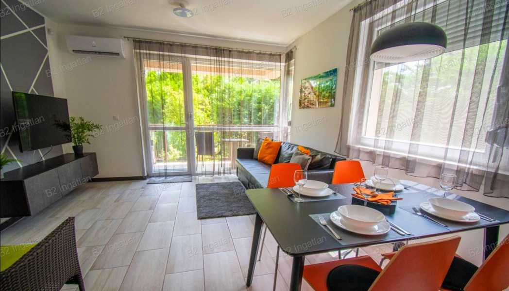 Balatonboglár központjában, kiváló elhelyezkedéssel kínálunk megvételre egy új építésű, modern, földszinti, kertkapcsolatos 2szobás apartmant, mindössze 250 méterre a strandtól és 150 méterre a vasútállomástól. Az ingatlan 50 nm alapterületű, elrendezése praktikus és jól kihasználható. A lakás amerikai konyhás nappalival és külön hálószobával rendelkezik, így ideális választás nyaralónak, állandó használatra vagy befektetésnek is. A 4 nm-es erkély kellemes kapcsolódást biztosít a rendezett, 80 nm-es, öntözőrendszerrel ellátott kerthez, amely az erkélyről közvetlenül megközelíthető. Az összes helyiség a kert felé néz, ami különösen nyugodt, zöld csendes, madárcsicsergős környezetet teremt. A déli tájolásnak köszönhetően a lakás rendkívül napos és világos, miközben elhelyezkedésének egyik legnagyobb előnye, hogy a központban található, mégis csendes, zöld környezetben helyezkedik el. Pár lépésre minden megtalálható, ami a kényelmes mindennapokhoz vagy a pihentető balatoni kikapcsolódáshoz szükséges. Az épület korszerű, új építésű, hő és hangszigetelt, így egész évben komfortos használatot biztosít. A fűtésről és a meleg vízről gázcirkó gondoskodik, a split klíma pedig hűtő és fűtő funkcióval is rendelkezik. A ház saját, a lakók számára fenntartott parkolóhelyekkel rendelkezik, ami ebben a központi elhelyezkedésben különösen értékes előny. Az apartman jelenleg is működik Airbnb szállásként, így befektetési célra is kiváló lehetőség. Igény esetén a jelenlegi üzemeltető a további működtetést is vállalná, ami különösen előnyös annak, aki azonnal bevételt termelő ingatlant keres. Balatonboglár a déli part egyik legkedveltebb települése, ahol a balatoni életérzés, a rendezett környezet és a kiváló infrastruktúra egyszerre adott. A közelben éttermek, kávézók, üzletek, gyógyszertár és a mindennapi élethez szükséges szolgáltatások is könnyen elérhetők. A vasútállomás közelsége gyors és kényelmes közlekedést biztosít, a strand pedig néhány perc sétával elérhető, így az ingatlan elhelyezkedése valóban kiemelkedő. Ez a lakás tökéletes választás azok számára, akik modern, napfényes, kertkapcsolatos ingatlant keresnek Balatonboglár egyik legjobb részén, a központ minden előnyével, mégis csendes, nyugodt környezetben.
