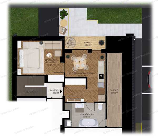 Balatonlellén új építésű lakás eladó Balaton: kb. 700–900 m Balatonlelle kedvelt, csendes részén, igényes környezetben eladó lakások egy exkluzív, mindössze 4 lakásos társasházban. A lakók kényelmét privát, mediterrán hangulatú udvar, közös medence, szauna és grillterasz szolgálja, így az ingatlan állandó lakhatásra, nyaralónak vagy befektetésnek is kiváló választás. A társasházban már csak 2 lakás elérhető. Műszaki leírás Külső hőszigetelés: 20 cm Nyílászárók: elektromos fém redőnnyel Fűtés: kondenzációs kazán, radiátoros hőleadással Hűtés: klíma Energia: napelemes rendszer éves szaldó elszámolással Modern műszaki tartalom, kedvező fenntartási költségek. Elrendezés 1. lakás: – lakótér: 42 m² – terasz: 5 m² – külön tároló / félszoba jellegű helyiség: 9 m² – nappali–konyha–étkező – hálószoba – fürdőszoba Ár: 66.900.000 Ft 2. lakás: – lakótér: 51 m² – erkély: 9 m² – nappali–konyha–étkező – hálószoba – fürdőszoba Ár: 76.900.000 Ft Extrák – mindössze 4 lakásos társasház – privát, parkosított mediterrán udvar (kb. 700 m²) – kültéri medence – szauna – grillterasz – csendes, igényes környezet – kiváló befektetési lehetőség Vásárolható – felszíni kocsibeálló: 2.500.000 Ft – tároló (10 m²): 1.500.000 Ft Lokáció – Balaton part: kb. 8–10 perc séta – Balatonlelle központ: néhány perc autóval – éttermek, boltok, kikötő a közelben – könnyű megközelítés az M7 autópályáról Fizetési ütemezés: – 20% kezdő befizetés – 80% az átadáskor Bővebb információért, megtekintés egyeztetésért, kérem keressen a megadott elérhetőségeimen! UPDATE VIP INGATLAN IRODA további szolgáltatásai: Energetikai tanúsítvány készítés, Díjmentes-bank semleges hitelügyintézés, Ügyvédi háttér, Közjegyző, Földhivatali ügyintézés, Építész, Lakberendező.