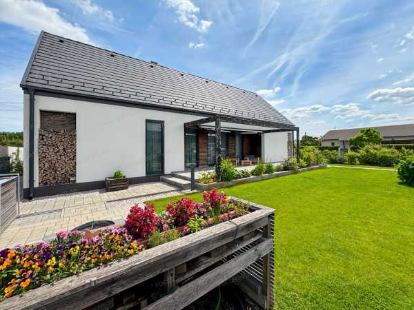 Kizárólag a FOCUS INGATLAN kínálatában találja meg ezt a kivételes lehetőséget! Kecskemét-Méntelek csendes, rendezett utcájában egy 525 nm-es, gyönyörűen parkosított telken várja új tulajdonosát ez a 98 nm-es, nappali + 2 szobás, modern családi ház, amely a kifinomult ízlés és a praktikum tökéletes ötvözete. - Élettér és Kikapcsolódás: Tágas, 11 m²-es fedett terasz és egy további, lenyűgöző 30 m²-es hidegburkolatú terasz biztosítanak ideális helyszínt a családi és baráti összejövetelekhez, valamint a mindennapi pihenéshez. - 6 kW teljesítményű, szaldó elszámolású napelem rendszer: Minimalizálja rezsiköltségeit és hozzájárul a fenntartható életmódhoz. - Modern elektromos padlófűtés: Helyiségenként külön szabályozható termosztátokkal a maximális komfortért. - Hangulatos kandalló: Beépített, szobánkénti hőelosztó szellőzőkkel gondoskodik a kellemes melegről és a meghitt atmoszféráról. - 3,5 kW-os inverteres hűtő-fűtő klíma: Biztosítja az optimális hőmérsékletet minden évszakban. - Központi, hővisszanyerős szellőztető rendszer (légtechnika): Folyamatosan friss, tiszta levegőt garantál az egész házban, energiaveszteség nélkül. - Egyedi tervezésű konyhabútor: Beépített, minőségi gépekkel. - Számos praktikus beépített bútor: Optimális helykihasználást és rendezett tárolást tesznek lehetővé. - Központi porszívó rendszer: A kényelmes és pormentes takarításért. - 26 nm-es fedett kocsibeálló: Akár két gépjármű számára is biztonságos parkolást nyújt. - Gondozott, térkővel burkolt és gyönyörűen parkosított udvar: Automata öntözőrendszerrel és fúrt kúttal a mindig zöldellő környezetért. TOVÁBBI ELŐNYÖK ÉS LEHETŐSÉGEK: A telek 30%-os beépíthetőségi mutatója rugalmas bővítési lehetőségeket biztosít a meglévő épülethez. Az eladó, aki maga is építész, szakmai támogatását és tapasztalatát kínálja a jövőbeni fejlesztések megtervezésében és megvalósításában – egyedi lehetőség az új tulajdonos számára! AZONNAL KÖLTÖZHETŐ ÉS TEHERMENTES! Kifejezetten ajánlom ezt a precízen kivitelezett, dekoratív és valóban egyedi hangulatú otthont annak a vevőnek, aki egy minden igényt kielégítő, azonnal birtokba vehető ingatlant keres Kecskemét csendes kertvárosi részén. Ez nem csupán egy ház, hanem egy életstílus! Ne maradjon le erről a páratlan ajánlatról! Vegye fel velünk a kapcsolatot még ma egy személyes megtekintésért, és tegyen ajánlatot álmai otthonára! FOCUS INGATLAN – Veled a középpontban! Eladó kizárólag a FOCUS INGATLAN kínálatából Kecskemét - Méntelek cserndes és rendezett utcájában, 525 nm nagyságú, gyönyörűen parkosított telken 98 nm-es, nappali + 2 szobás modern családi ház. JELLEMZŐK: - nettó földszinti alapterület: 86,85 m2 - 11 m2 fedett terasz + 30 nm hidegburkolt terasz - 6 kW szaldós napelem rendszer - 3,5 kW inverteres hűtő / fűtő klíma - elektromos padlúfűtés, szobánként szabályozható termosztáttal - kandalló, beépített szobánkénti szellőzővel - egyedi konyhabútor, beépített gépekkel - beépített bútorok sokasága - központi porszívó - zárt szellőzőrendszer ( légtechnika ) - 26 nm fedett kocsibeálló, akár 2 autónak - törkövezett, gyönyörűen parkosított udvar automata öntözővel - fúrt kút - tehermentes, azonnal költözhető A 30%-os telek beépíthetőségi mutató rugalmas bővítési lehetőségeket biztosít a meglévő épülethez. Az eladó, aki maga is építész, szakmai támogatását kínálja a jövőbeni fejlesztések megtervezésében és megvalósításában. Kifejezetten ajánlom ezt a házat annak a vevőnek, aki egy precízen kivitelezett, dekoratív és valóban egyedi hangulatú, azonnal birtokba vehető otthont keres.