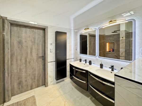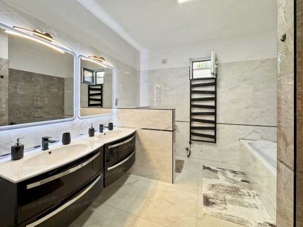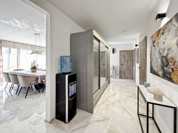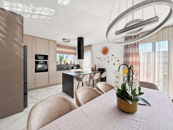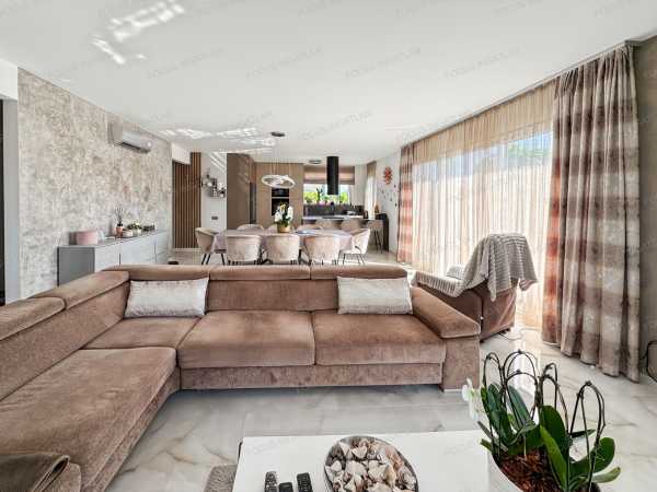 Kiemelt Ajánlat a FOCUS INGATLAN Kínálatából! Kecskemét legkedveltebb, családi házas övezetében, egy modern, energiatakarékos és prémium minőségű családi ház várja új tulajdonosát! Ez a 2023-ban épült, 580 nm-es telken elhelyezkedő otthon tökéletes választás azoknak, akik a kényelmet, a fenntarthatóságot és a modern életstílust részesítik előnyben. A teljes 124 nm-es lakótérhez egy tágas, 27 nm-es garázs és két, egyenként 18 nm-es terasz is tartozik. A ház jellemzői és elrendezése: A házban a napfényes, amerikai konyhás nappali adja a közösségi élet központját. A nagyméretű ablakok nemcsak világossá teszik az otthont, de mindegyikhez elektromos redőny is tartozik, ami extra kényelmet és biztonságot nyújt. A kellemes hőmérsékletről nyáron a beépített klímák gondoskodnak. Az elrendezés jelenleg egy egész szobát és egy félszobát (dolgozószoba) foglal magában, de a tágas tereknek köszönhetően igény esetén egy plusz hálószoba is kialakítható, anélkül, hogy a nappali tágassága csorbulna. A praktikus rendszerezést a különálló háztartási helyiség és a lakásban elhelyezett beépített szekrények segítik. Műszaki extrák és kényelmi funkciók: - Nullás rezsi: A 16 kW-os napelemrendszernek köszönhetően a fűtési és villanyköltségek gyakorlatilag nullára csökkenthetők. - Korszerű fűtés: A kellemes hőérzetről modern, elektromos padlófűtés gondoskodik. - Innovatív építéstechnológia: A fa vázas, könnyűszerkezetes épület 2023-ban készült, EMI tanúsítvánnyalrendelkezik, ami garancia a kiváló minőségre és az energiahatékonyságra. - Kültéri pihenés: A tágas teraszok egyike ad helyet a beépített jakuzzinak, ami a mindennapokban nyújt igazi luxusélményt. - Teljesen felszerelt: Az ingatlan a vételárban szereplő teljes bútorzattal együtt eladó, beleértve a prémium konyhabútort is. Ez az otthon ötvözi a modern technológiát a kényelemmel, egy nyugodt, mégis központi helyen. Ne habozzon, ha egy olyan házra vágyik, ahol a rezsi nem jelent többé fejfájást, és minden a kényelmét szolgálja! Megtekintés: kizárólag személyes irodai konzultációt követően. Kiemelt Ajánlat a FOCUS INGATLAN Kínálatából!