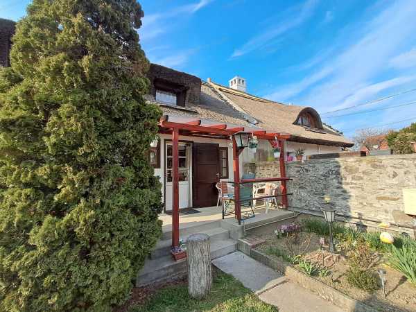 UPDATE VIP INGSTLANIRODA KÍNÁLATÁBÓL: Tihany szívében hangulatos parasztház eladó – kiváló befektetés vagy nyaraló! Eladásra kínálunk Tihany központi részén egy különleges hangulatú, gondosan karbantartott parasztházat, csendes, mégis kiváló elhelyezkedéssel. Főbb jellemzők: -40 m² alapterület+20 m² tetőtéri beépítés - 309 m²-es, rendezett udvar -10 m²-es fedett terasz (fa szerkezet, polikarbonát tető) -Hagyományos tihanyi kő falazat -Felújított nádtető, korszerű betongerendás tetőszerkezet Lakótér elosztása: Alsó szint: Előtér 1 szoba + 1 félszoba Kádas fürdőszoba WC-vel Főzőfülke Felső szint: 1 szoba Kisebb hall Zuhanyzós WC Műszaki tartalom: -Gázfűtés + hangulatos cserépkályha -Elektromos fali panel az emeleten -Melegvíz: villanybojler + kombi gázkazán -Külön melegvíz-ellátás az emeleten Melléképületek: -30 m²-es különálló, nyári lakhatásra alkalmas épület (konyhával) -Garázs -16 m²-es száraz pince -Nyári konyha, kamrák -Parkolás akár 2 autó részére az udvaron Miért jó választás? -Központi, mégis nyugodt elhelyezkedés -Egyedi, autentikus tihanyi hangulat -Ideális nyaralónak vagy befektetésnek Minimum 2 szobás budapesti lakás értékegyeztetéssel beszámítható.