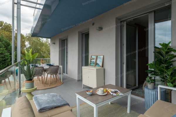 A BALAHOMES INGATLAN eladásra kínálja egy nappali + 2 hálószobás, exkluzív, lakberendező által kialakított lakást teljes berendezéssel, gépkocsibeállóval, tárolóval, kültéri medencével. Az épület, amelyben a lakás találathó modern, letisztult design-nal rendelkezik, mindössze pár percnyi sétára a Balatontól. A BALAHOMES INGATLAN által kínált LAKÁS jellemzői: - 2.emeleti - 69 m2 + 20 m2-es erkély - teljes berendezés, gépesítés a vételár része - minőségi burkolatok, szaniterek - energiatakarékos hőszivattyús mennyezeti hűtés-fűtés (távvezérelhető) - praktikus, élhető alaprajz - kialakítása: előszoba, amerikai konyhás nappali étkezővel, 2 hálószoba, fürdőszoba, wc, erkély - érdekessége, hogy mindkét hálószobából és a fürdőszobából is ki lehet menni az erkélyre A társasház nagy parkosított kerttel és egy kültéri, feszített víztükrű medencével rendelkezik. A vételár 5%-os ÁFÁ-t tartalmaz. Balatonföldvár az M7-es autópályán könnyen megközelíthető. A település barátságos, nyugodt hangulatot áraszt és kedvelt célpontja a vitorlázók szerelmeseinek. Amennyiben a BALAHOMES INGATLAN által kínált LAKÁS, vagy bármely a kínálatunkban található INGATLAN felkeltette érdeklődését, hívjon bármikor a megadott telefonszámon. Vásárolna, de nincs rá keret? Kollégám díjmentes, banksemleges hitelügyintézéssel áll rendelkezésére. Keresse irodánkat, amennyiben ingatlan értékbecslésre, home staging vagy lakberendezési tanácsadásra, költöztetésre, átalakítási és felújítási munkák végzésére keres megbízható, profi szakembereket. Balahomes Ingatlan- „Mi elvezetünk az otthonodba!”