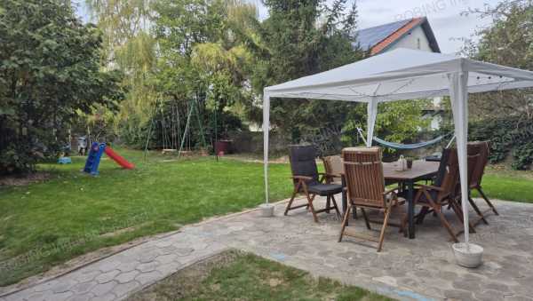 CSAK IRODÁNK KÍNÁLATÁBAN XI. kerület családias, hangulatos zöldövezetében, pár perc távolságra Őrmezőtől illetve Kelenföldi pályaudvartól található az ingatlan. A ház 1980-ban épült, 3 lakás található meg benne. Az épület kívül-belül jő állapotú, a külső homlokzat szigetelve lett. A lakás közvetlen kertkapcsolatos, 600nm-es saját lekerített kert tartozik hozzá. Parkolás a saját garázsban, illetve előtt biztosított a tulajdonosoknak. Az ingatlan 210nm-es, praktikus elosztásának köszönhetően megtalálható benne, 4 szeparált, jó méretű háló ( ebből az egyik most gardróbnak van használva), egy tágas nappali, egy szintén jó méretű, nagy családok számára is kényelmes konyha-étkező, 2 fürdőszoba, előtér, illetve a terasz. Műszakilag illetve esztétikailag is jó állapotú, fűtését gáz kazán biztosítja, hőszigetelt nyílászárók lettek beépítve, modernizálták az elektromos és vízhálózatot, konyhája felszerelt és gépesített. Elosztásának és elrendezésének köszönhetően, nagyobb családnak, illetve akár több generációnak is kényelmes otthont biztosíthat. Nagy előnye, hogy csendes, kellemes környezetben található, 2 perc távolságra több busz is elérhető, de a környéken megtalálható iskola, óvoda, bevásárlási lehetőség, piac, illetve az Etele pláza sincs messze. Ha tágas, nagy terekkel rendelkező, felújított lakást keres ami saját kerttel rendelkezik megtalálta! Megtekintéssel kapcsolatban várom hívását!