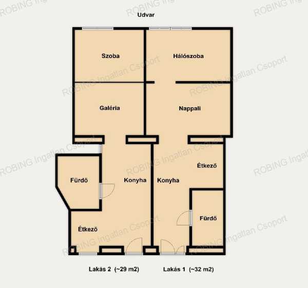 ***** MOST AKÁR, DUPLÁN JÓL JÁRHAT! ***** *** Eladó 2 külön bejáratú, frissen felújított lakás a VI. kerületben, az Andrássy út szomszédságában! *** Megvételre kínálunk a VI. kerület frekventált, mégis csendes részén, a Székely Bertalan utcában, egy kívül-belül rendezett társasház második emeletén elhelyezkedő, két külön bejáratú lakássá alakított, csendes udvarra néző "KETTŐ AZ EGYBEN" ingatlant. (A szobák ablakai előtt nincs eljárás!) Lakás 1: 32 m² alapterület (nappali + háló) Lakás 2: 29 m² alapterület + 7 m² galéria (A jelen hirdetésben szereplő alaprajzon, bal oldalon látható.) A két ingatlan akár külön-külön is megvásárolható!!! 32 nm-es lakás: 51.900.000 Ft- 29 nm-es lakás: 48.900.000 Ft- Általános jellemzők: - Elektromos fűtés és hűtő-fűtő klímák - Teljes körű felújítás: új elektromos és vízhálózat, modern műanyag nyílászárók, új burkolatok, stb. - Külön víz- és villanyóra mindkét ingatlanhoz FONTOS: A két lakás közül csak az egyik (32 m2-s) rendelkezik önálló villanyórával, a másik lakás csak almérővel működik! Felszereltség, amit a vételár tartalmaz: - Beépített konyhabútorok - Új szaniterek, szerelvények További információk: - Megtekintés rugalmasan A hirdetésben szereplő alaprajz, tájékoztató jellegű. A környék infrastruktúrája kiváló. Szinte minden megtalálható a közelben, ami egy kényelmes és fiatalos kozmopolita életvitelhez elengedhetetlen! Tökéletes lehetőség befektetőknek vagy akár két külön lakást keresőknek a belváros szívében! Amennyiben szeretné megtekinteni személyesen az ingatlanokat, kérem keressen bizalommal!