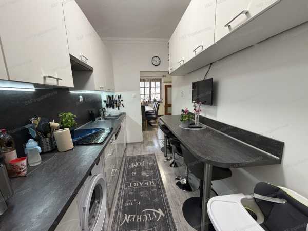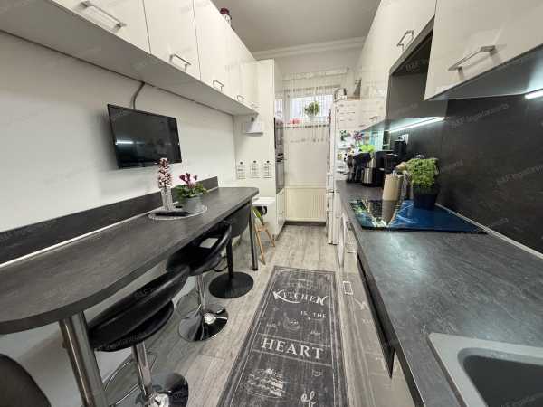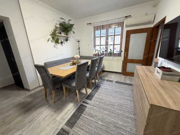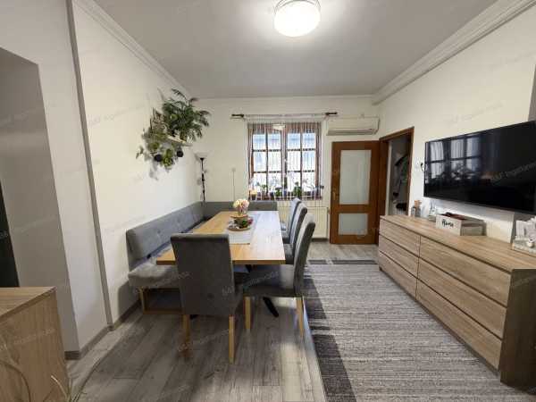 Eladó igényes családi ház Hajdúszoboszló kertvárosában! Hajdúszoboszló csendes, kertvárosi részén kínálunk megvételre egy 1993-ban épült, kiváló állapotú, 75 m²-es családi házat, 439 m²-es telken. Az ingatlan beton alapra, téglából épült, szigetelt falazattal rendelkezik, tetejét pedig tartós Bramac betoncserép fedi. A tetőtér beépíthető, így további bővítési lehetőséget kínál az új tulajdonos számára. A ház dél-nyugati tájolásának köszönhetően világos, napfényes terekkel rendelkezik. Belső elrendezése praktikus és kényelmes: 3 szoba, egy tágas étkező, valamint egy gyönyörűen kialakított konyha és fürdőszoba biztosítja a mindennapi komfortot. Az otthon melegéről gáz-cirkó fűtés gondoskodik radiátoros hőleadással, a nyári hőségben pedig klímaberendezés biztosít kellemes hőmérsékletet. Az ingatlan 2020-ban teljes körű felújításon esett át, így az új tulajdonos egy korszerű, azonnal költözhető otthonba érkezhet. A telken található továbbá egy 40 m²-es téglából épült dupla garázs, amely kényelmes parkolást és tárolási lehetőséget kínál, és helyet kapott benne egy wc is. Ideális választás mindazok számára, akik nyugodt környezetben, mégis jól megközelíthető helyen keresnek minőségi otthont. Ne hagyja ki ezt a remek lehetőséget! /AZ ALAPRAJZ TÁJÉKOZTATÓ JELLEGŰ/