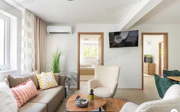 Különleges ajánlat befektetők számára! Siófok Ezüstpartján, vízparti balatoni panorámás 2. emeleti lakás eladó! Jogilag jelenleg folyamatban van a 3 lakássá alakítása, mely alapján 2 db nappali +1 szobás (k-i és ny-i tájolású) és 1 db nappali + 2 szobás (kny-i tájolású) ingatlan kerül kialakításra. A lakásokat jelenleg is kiadásra hasznosítja a tulajdonos, értékállósága miatt kiváló lehetőség ÚJ tulajdonosa számára is. A lakások belülről kivételesen ízlésesen, stílusosan berendezettek.
