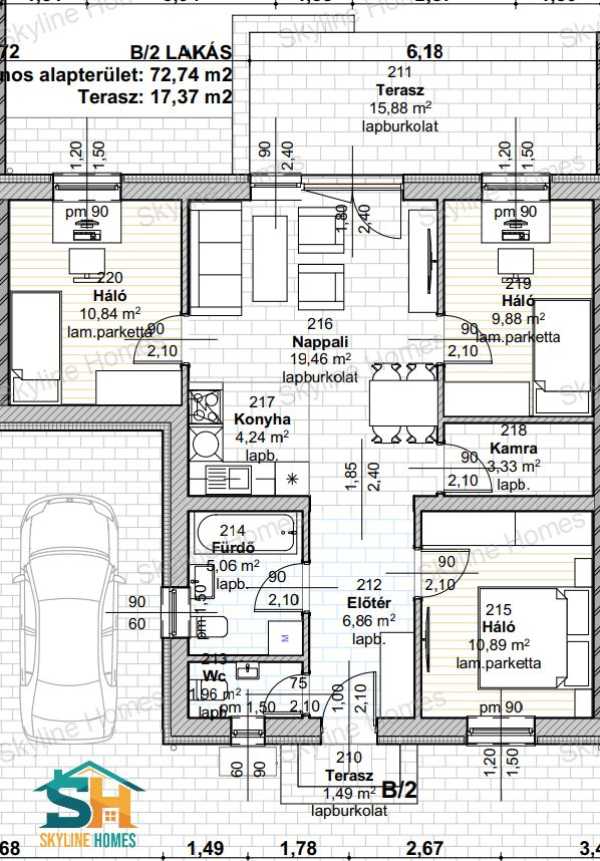 Új építésű sorházi lakások Kiskunlacházán – saját kerttel és terasszal! Kiskunlacháza központi, mégis csendes részén kínálunk 73 m²-es, modern sorházi otthonokat, 235 m² saját kertrésszel és 16 m²-es terasszal. Elosztás: Amerikai konyhás nappali 3 hálószoba Fürdőszoba + külön WC Saját gépészeti helyiség Műszaki tartalom: Megújuló energiás, hőszivattyús fűtésrendszer 30-as Leier főfalak, 10 cm homlokzati hőszigetelés 20cm kőzetgyapot szigetelés a tetőszerkezetben Műanyag, 3 rétegű nyílászárók Hideg- és melegburkolatok választhatóan (értékhatár szerint) Saját utcafronti és telekosztó kerítés Tereprendezés benne az árban