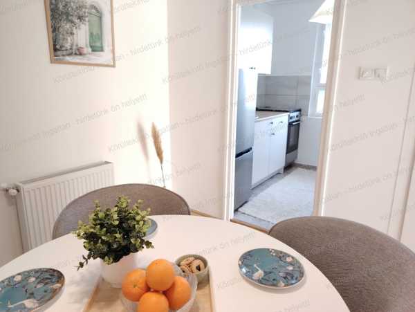 A Kuruclesi erdő szomszédságában a Tárogató út felső részén (Szerb Antalhoz közel) csendes, 1. emeleti, Törökvészre panorámás, 2 szobás, erkélyes, tégla építésű, felújított lakás szeparált tárolóval (4-5 m2) és udvari felszíni autóbeállóval eladó. Az utcafronttól távolabb álló tégla építésű társasházunk az 1970-es években épült, melyet lombhullató és örökzöld fákkal, cserjékkel borított saját kert vesz körbe. A lakás saját, önálló helyrajzi számmal és a ház telkén belül saját, névre szóló beállóval rendelkezik. A lakás jellemzői: - Kádas fürdő, külön wc (elszívóval), - távolról vezérelhető (WIFI-s) új gázcirkó fűtés, - új hűtő/fütő klíma, - eredeti nyílászárók szigetelt üveggel, - a konyhában pultvilágítás, az étkezőben és a nappaliban hangulatvilágítás, - teljes villamoshálózat csere, - vízvezetékek részbeni cseréje. A környéken megtalálható: - SALT pékség és kávézó, brunch, menüzős hely, pizzéria, élelmiszerbolt , fodrászat, kozmetika a közelben, - bölcsőde, óvoda, iskola, játszótér a környéken. - 2 percre a 129-es busz megállója, mellyel negyed óra alatt a Széll Kálmán téren van, - 4 percre 29-es busz(Hűvösvölgy - Szentlélek tér) , 956-os éjszakai busz, 8 percre villamosok: 56 (Hűvösvölgy - Budafok), 56A, 61 (Móricz Zs.körtér – Hűvösvölgy), 61A.
