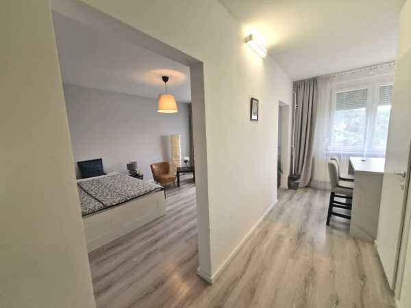 Tatabánya Újváros városrészének egyik jól megközelíthető, keresett részén, tízemeletes panelépület legfelső szintjén kínálunk megvételre egy teljes körűen felújított, 36nm-es, egyedi kialakítású lakást. Az eladó lakás nem csupán Esztétikailag újult meg, hanem műszaki tartalmában is: a teljes víz- és villanyhálózat cseréje megtörtént, így a leendő tulajdonos hosszú távon is biztonságos és korszerű otthonba költözhet. Az eladó lakás jelenlegi formáját átgondolt átalakítás eredményeként nyerte el, amely jelentősen növeli a térérzetet és a funkcionalitást. A bejárati ajtón belépve egy közlekedőbe érkezünk, ahol rögtön jobbra egy külön kialakított, tágas gardróbszoba található, amely nemcsak a tárolást oldja meg kényelmesen, hanem a mosógép elhelyezése is itt kapott helyet, így a lakótér teljes mértékben letisztult maradhat. A közlekedőből balra nyílik az egybenyitott nappali és hálórész, amely világos, jól berendezhető, otthonos hangulatú térként funkcionál. Tovább haladva került kialakításra a modern, fiatalos konyha is, amely egy étkezőpulttal egészül ki aminek az aljába a hűtő és a egy fiókos rész helyezkedik el, így praktikus és esztétikus megoldást kínál a mindennapokra. Az eladó lakás enteriőrje egységes, letisztult stílust követ, ahol a világos színek dominálnak, kiegészülve modern, tükrös felületekkel, amelyek tovább növelik a térérzetet. A burkolatok igényesek: a szobában parketta, míg a többi helyiségben járólap található. A fürdőszoba egyszerű, mégis elegáns kialakítású, szintén a letisztult, fehér tónusokra építve. Az összes nyílászáró műanyagra lett cserélve, redőnnyel felszerelve, a bejárati ajtó pedig több ponton záródó biztonsági ajtó. A lakás alacsony fenntartási költségekkel üzemeltethető, a közös költség mindössze 14.000 Ft havonta, ami különösen kedvező egy ilyen állapotú ingatlan esetében. A vételár részét képezik a minőségi, IKEA bútorok is, így az ingatlan akár azonnal költözhető vagy bérbe adható állapotban van. Elhelyezkedése kiváló: a közelben, néhány perces sétatávolságon belül megtalálható a Kodály Zoltán Általános Iskola, óvoda, gyógyszertár, üzletek, pékség, bevásárlási lehetőségek és buszmegálló, így a mindennapi élethez szükséges minden infrastruktúra könnyedén elérhető. Befektetési szempontból is kifejezetten jó választás, hiszen méretének, állapotának és elhelyezkedésének köszönhetően gyorsan és stabilan kiadható, jelenlegi piaci viszonyok mellett körülbelül 140-160 ezer forintos havi bérleti díjjal számolva. Adatbázisunkban számos eladó-kiadó ingatlan közül választhat. Személyre szabott ügyintézéssel, ügyvédi háttérrel állunk ügyfeleink rendelkezésére. 15 éves értékesítői és vezetői tapasztalat. Minden egy helyen, az ingatlan bemutatásától a kulcsátadásig! Hitelminősítés a Fő téri irodánkban a hét minden napján. Legyen közös a sikerünk!