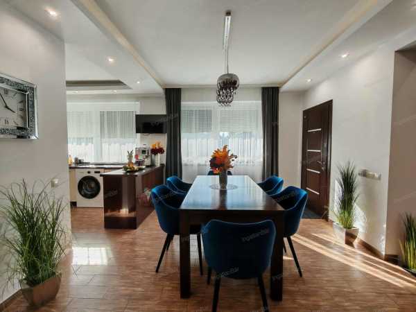 Nyíregyháza-Oroson kínálunk eladásra egy 130 m²-es, modern családi házat, melyhez 1270 m²-es, parkosított telek tartozik. Az ingatlan minden részletében a minőséget és a kényelmet szolgálja, kompromisszummentes otthon. Főbb jellemzők: 3 hálószoba, gardrób szoba,2 wc, 1 fürdőszoba, terasz Lakóterület: 130 m² Telek mérete: 1270 m², parkosítva Padlófűtés és kandalló a kellemes hőérzetért Nappaliban beépített házimozi rendszer Minőségi bútorok és prémium nyílászárók Klímaberendezés Elektromos redőnyök mindenhol felszerelve Beépített kamerarendszer a maximális biztonságért Elektromos garázskapu Garázsban telepített elektromos autótöltő Háromfázisú áram kiépítve Fúrt kút és automata öntözőrendszer telepítve Extrák, amik kiemelik az ingatlant: Modern, világos terek Gondosan karbantartott kert Csendes, nyugodt környék Magas komfortfokozat és exkluzív kialakítás Irányár: 119.999.000 Ft Ez a ház tökéletes választás azoknak, akik tágas életteret, modern megoldásokat, környezettudatos felszereltséget és biztonságos környezetet keresnek Nyíregyháza közelében. Kovács-Francesco Ádám 0630/271-9020 IngatlanBár