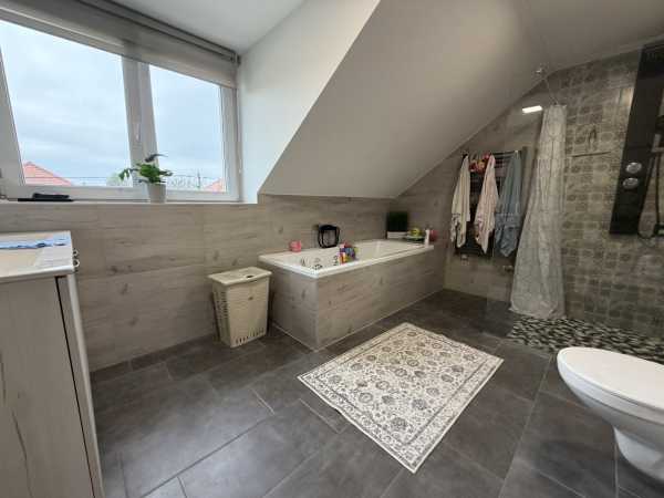 Csorna – szeretettel felújított családi ház eladó Irányár: 89.900.000 Ft Szeretnél egy kényelmes, világos otthont családodnak? Ebben a 135 m²-es, kétszintes házban minden adott a kényelmes mindennapokhoz, 1163 m²-es, parkosított és körbekerített telken. Helyiségek: Földszint: nappali, amerikai konyhás étkező, fürdő, szélfogó, kazánház, terasz Tetőtér: 2 szoba, lakótér, kamra, fürdő Műszaki tartalom: Teljes felújítás és bővítés 2020-ban Minden vezeték cserélve Padlófűtés, emeleti klíma 30 cm szigetelés, műanyag nyílászárók, TERRÁN cserépfedés Extra előnyök: Külső színezés a saját ízlésed szerint alakítható Csendes, családbarát környezet Győr kb. 30 perc alatt elérhető Ha szeretnéd megtekinteni, vagy kérdésed van, keress bizalommal: