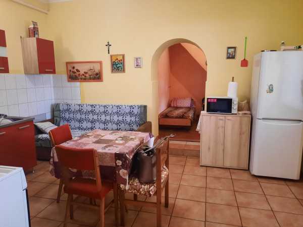 Békéscsabán, Jaminában, eladó egy 72 nm-es, jó szerkezeti állapotú, némi felújítást igénylő családi ház, 880 nm-es telken. Irányár: 19,8 MFt Tel: +36205020207 Békéscsaba kedvelt kertvárosi részén, Erzsébethelyen, csendes utcában, jó lakókörnyezetben található ez a kis, önálló családi ház. Buszmegállótól 300 méterre helyezkedik el, könnyen megközelíthető autóval és tömegközlekedéssel is. Az épület nem repedezett, nem vizes, kiemelt, magas lábazaton áll. Jó a tetőszerkezete, múlt évben kapott új ereszcsatornát. Fűtése központi fűtés lapradiátorokkal és egy szilrádtüzelésű kazánnal. A meleg vizet villanybojler állítája elő, gazdaságosan, éjszakai árammal. Egy 24 nm-es, nagy szobából, 15 nm-es konyhából, 6 nm-es fürdőszobából és egy 9 nm körüli félszobából áll. A lakás előtti zárt verandát kiszélesítették, így egy 18 nm-es, világos, fűtött előtér jött létre. Maradt egy kb. 6 nm-es nyitott tornác, amit nem építettek be, ez teraszként funkcionál. A főépület végén foglal helyet a kazánház, a vegyes tüzelésű kazánban első sorbán fával lehet fűteni. Az udvar füves. Egy nagy diófa hatalmas lombkoronája teszi elviselhetőbbé a nyári forróságot, a legmelegebb napokon is kellemesen hűvös van alatta. Bent pedig a vastag vályogfalak, és a saralt födém biztosítanak jó klímát. Elsősorban külső, esztétikai felújítást igényel a ház, némi korszerűsétést, de működik benne minden, lakható az állapota. A konyhát és a nagy szobát múlt évben burkolták járólappal, illetve laminált padlóval. A fürdőszoba nem lett felújítva, és az előtér burkolatai, nyílászárói, a falak festése várat magára. Valamint egy külső festés-mázolás. Aki nem riad vissza ezektől a felújításoktól, és egy jó szerkezeti állapotú házat keres, az lehet megtalálta a megfelelőt! Ha egyedül költözik, illetve másodmagával, akkor pont ideális a mérete és elrendezése. Nagyobb család is számolhat vele, hisz tervezhet a bővítésével. Tekintse meg!