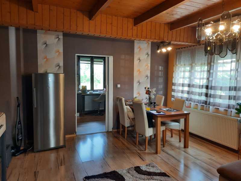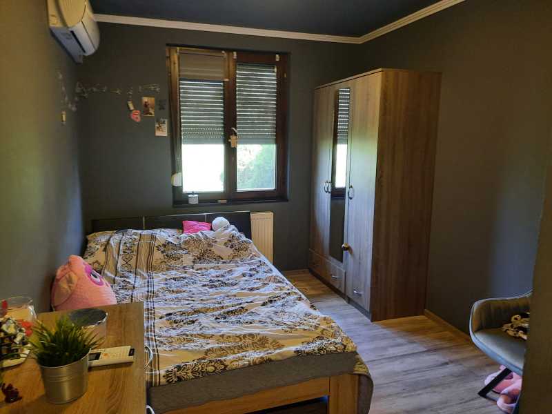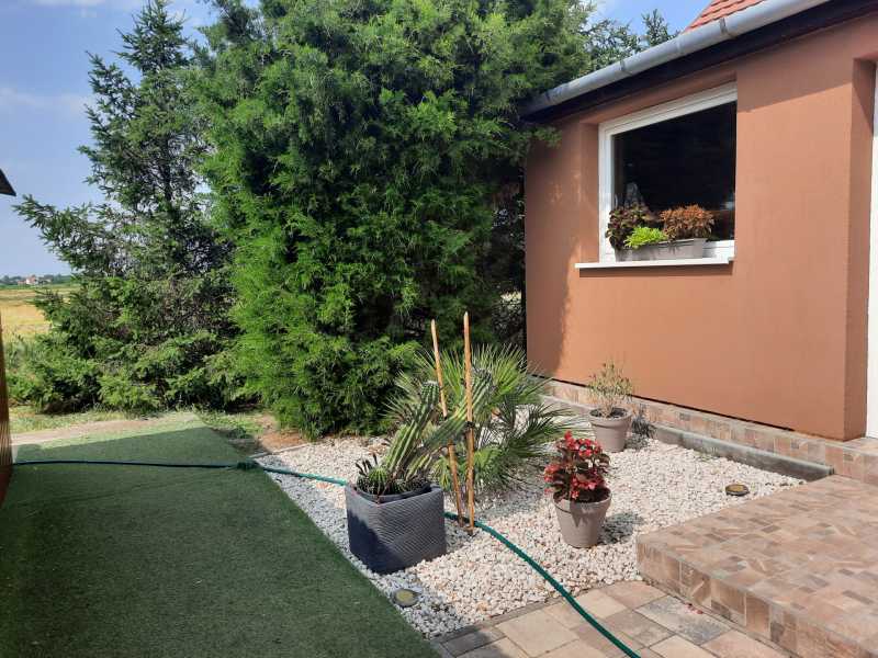 Békéscsaba központjától 3 km-re, korszerű, modern, passzív ház eladó. A főépület 130 nm-es, 5 szoba + nappalis. Parkosítva, termő gyümölcsfákkal, dísznövényekkel. (A+++) Irányár: 99 MFt Tel: +36205020207 Békéscsaba központjától, 3 km-re, Mezőmegyer irányába, Kisréten, kiváló megközelíthetőséggel főúttól, buszmegállótól 110 méterre helyezkedik el, a 7200 nm-es, körbekerített telken álló 130 nm-es családi ház. Külterületi besorolása ellenére, nem tanya, hanem művelés alól kivett, lakóház. 2007-ben épült, korszerű megoldásokkal. Napelemek biztosítják az egész ház energiaellátását, csupán vízszámla van. A fűtésrendszer több lábon áll, szilárdtüzeléssel is biztosítva lett, radiátorokkal és vegyes kazánnal. A gáz ingyen beköthető, ha valaki igényt tart rá, a telek mellett húzódik a gázvezeték. Városi, vezetékes víz van, emellett fúrt kútról lehet öntözni. A szennyvízaknát elég 2 évente üríteni, és a csatornahasználati díj sincs beépítve a vízszámlába. A teljes egészében körbe kerített telekre, elektromos kapun át juthatunk be, ahol gyönyörű parkosított környezet fogad bennünket. A 3 garázsig, illetve a mellette kialakított 3 férőhelyes parkolóig kocsibejáró vezet. A bejárót zöld pázsit és dísznövények övezik. A garázsok után klimatizált melléképületek következnek (mosókonyha, kamra, tároló). Majd egy nagy szín, és egy elkerített baromfiudvar és baromfiól. A hátsó kert füves. Az udvaron szőlő és termő gyümölcsfák vannak (többek közt sárga-, őszibarack, cseresznye, szilva, körte). A lakásnak részben beépítették a tetőterét, még bőségesen áll hely rendelkezésre, további helyiségek kialakítására. A közlekedőből jelenleg egy szoba nyílik, a másik irányba a padlástér beépítetlen részébe léphetünk. A földszint központi helyisége a tágas és világos nappali. Ebből nyílik egy praktikusan, és esztétikusan beépített, két éve felújított konyha, valamint egy több mint 11 nm-es szoba. Találhatunk lent még egy 17 nm-es hálószobát, és két több mint 11 nm-es félszobát. A rendkívül stílusos fürdőszoba a legjobb helykihasználással, múlt évben lett átépítve. A térérzetet növelő üvegfelülettel szeparált, peremnélküli, kétszemélyes zuhanyzó mellett,egy lebegő - önhordós - WC, és egy nagyon mutatós 3D-s díszburkolaton elhelyezett tükrös mosdószekrény kapott helyet. Az előszobából is nyílik külön egy mellékhelyiség WC-vel. A napelem rendszerről működtetett 9 db hűtő-fűtő Gree klíma nem csak a téli fűtést oldja meg 0 Ft-ból, hanem nyáron is minden helyiséget kellemesen hűvössé tesz. A buszmegálló egészen közel van (110 méterre), a legközelebbi ABC is csak 1000 méterre található. A Lidl és a Penny 2,8 km-re van innen. Óvoda-iskola-orvosi rendelő 2-2,5 km-re. A piac és a Center 3,7 km-re van csupán. Aki szeretne egy mai igényekre szabott, barátságos és stílusos családi házat, a központtól 3 km-re(!) kifejlett, fantasztikusan szép kerttel, annak nem kell tovább keresnie! Megéri most kicsivel többet kiadni, ha utána 0 Ft lesz a rezsije! Tekintse meg!