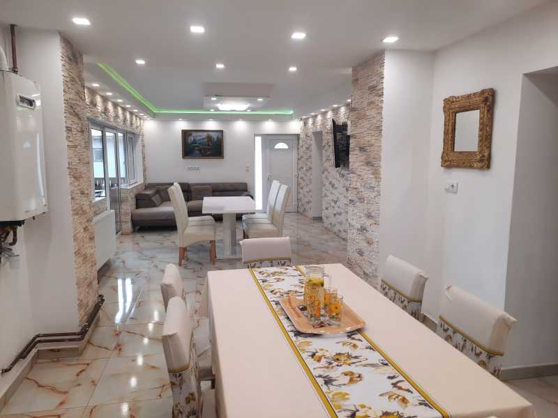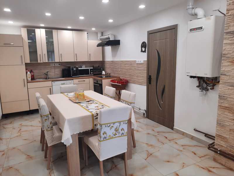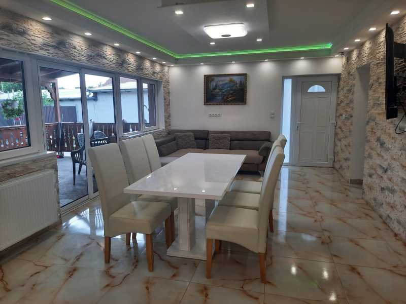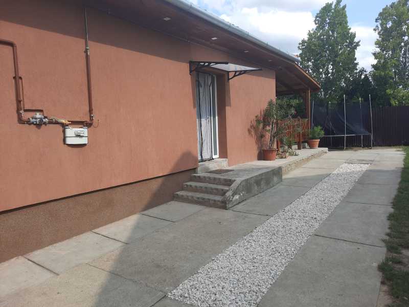 Békéscsabán, Jaminában, buszmegálló, óvoda, iskola, ABC közelében, eladó egy 2 szoba + gardróbos, családi ház, 38 nm-es amerikai konyhás nappalival, nagy terasszal, újszerű állapotban. A telek 386 nm, rendezett. Irányár: 44,9 MFt Tel: +36205020207 Jaminában, jól megközelíthető helyen, buszmegálló, óvoda, iskola, bolt közelében található a múlt évben, teljes felújításon átesett 94 nm-es családiház. A telek 386 nm-es. Új, zárt kerítéssel határolt, barátságos méretű udvarán kellemes pihenőkertet alakítottak ki. Egy tároló és egy 16 nm-es garázs található még rajta. A látványosan szép fából készült 24 nm-es fedett terasz, üvegezett tolóajtóval kapcsolódik a nappalihoz.Az amerikai konyhás nappali 38 nm-s, világos, tágas. A falakon díszkő burkolat, és nagy üvegfelületek, a padlón nagyméretű, fényes járólap. A nappaliból nyílik egy 18 és egy 25 négyzetméteres szoba. Ezek laminált padlóval burkoltak. Található a kettő között egy 6 nm-es gardrób, ami akár félszobának is alkalmas. A fürdőszobában épített kétszemélyes zuhanyzó van. Esztétikus, kőmintás csempével és járólappal burkolták egységesen az egész helyiséget. Elegendő a hely itt még a mosógépnek, a WC-nek és a fürdőszobaszekrénynek, a beépített mosdóval. A felújítás során aláfalazták a régi falakat, újra betonozták és szigetelték a helyiségeket. A víz, szennyvíz, villanyvezetékek is újak. A nappaliban, ledekkel felszerelt álmennyezetet építettek. A fűtésrendszer is korszerű, környezetbarát és gazdaságos: kondenzációs kazánnal, lapraditárokkal. A régi tetőt leszedték, teljesen újra rakták, részben új, részben bontott anyaggal. Akár kisebb, nagyobb családoknak is jó lehet, de a kétszoba + gardrób, nagy terasszal és amerikai konyhás nappalival, a párok és egyedülállók igényeit is kiszolgálhatja. Egy kis udvar, pihenőkerttel, garázzsal szintén sokak álma. Tekintse meg, legyen Ön a boldog tulajdonosa!