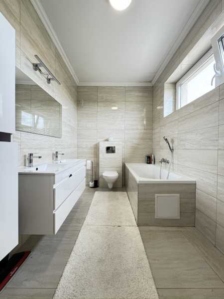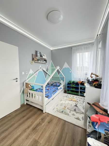 Eladó energiatakarékos ház Nyíregyháza Ságvári kertvárosában! Ez a 120 nm-es, kétszintes ikerház rész tökéletes otthont kínál a nyugalomra és kényelemre vágyóknak. A modern energiahatékonyságot egy 8 kW-os napelemrendszer biztosítja, így alacsony rezsiköltségekkel élvezheti a kényelmes életet. Főbb jellemzők: - 120 nm lakótér - Földszint: Előszoba, tágas nappali, konyha-étkező, fürdőszoba-WC, és egy hálószoba (10,05 nm) - Emelet: 3 szoba(10,00nm, 10,66 nm, 11,12 nm) , fürdőszoba-WC, lépcsőház. - 8 kW napelem - minden szobában LED szalag - 2 db klíma - elektromos padlófűtés minden helyiségben - EXTRÁK: riasztó, videós kaputelefon, elektromos aluredőny, kültéri lámpák - 400 nm-es telek: Szépen parkosított kert, ahol gyerekek és felnőttek is megtalálják a kikapcsolódást. - 18 nm garázs és tároló (3x3): Az autó és a kerti eszközök számára is van bőven hely. - 16 nm terasz - Filagória: mely kényelmes helyet biztosít a kerti partikhoz - Modern nyílászárók: Műanyag ablakok biztosítják a jó hőszigetelést. - Ipari áram bekötve: Ideális otthoni vállalkozáshoz vagy nagyobb energiaigényű eszközök használatához. AZ INGATLANOK CSAK A GARÁZSOKNÁL ÉRINTKEZNEK ! Ne hagyja ki ezt a kiváló lehetőséget! Hívjon most, és legyen az Öné ez a remek otthon!