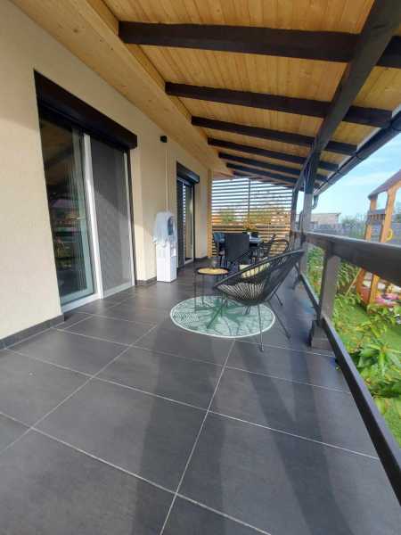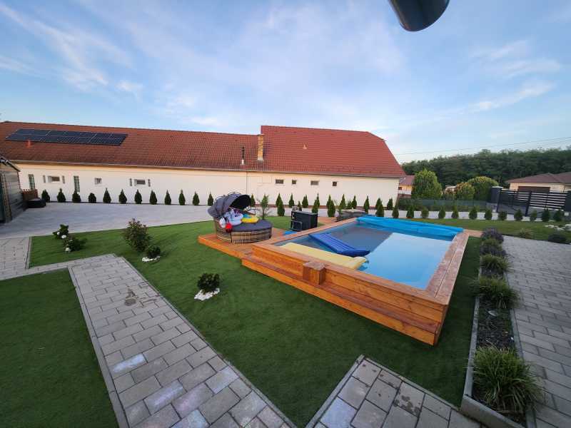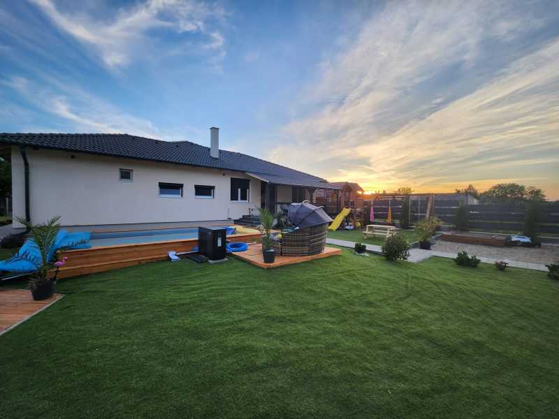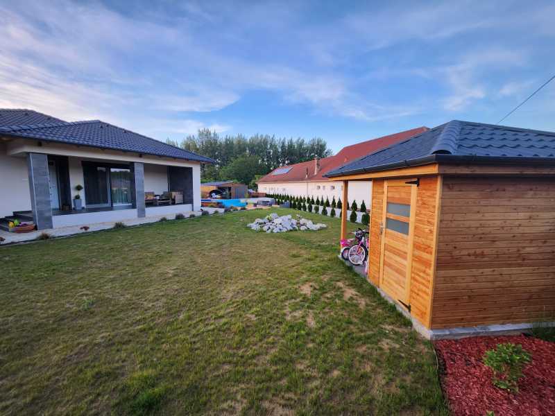 Modern családi ház eladó Nyírpazony - Kabalás dinamikusan fejlődő részén! Eladásra kínálok egy 2022-ben épült, szintes, 136 m² hasznos alapterületű családi házat, amely kényelmes és korszerű otthont biztosít új tulajdonosának. A 187 m²-es összterületű ingatlanhoz két terasz, egy fedett és egy nyitott, valamint egy 1485 m²-es gondozott telek tartozik. Műszaki jellemzők: - 30 cm Porotherm tégla falazat, 15 cm külső szigetelés, - prémium hullámos antracit tetőcserép - 3 rétegű ablakok, oldalra nyíló tolóajtós teraszbejárat, elektromos redőnyök, szúnyoghálók minden ablakon. - Vaillant kazán padló- és radiátorfűtéssel, - alternatív fűtési lehetőségként 14 kW teljesítményű Kratki kandalló a nappaliban. - Smart home technológia: Motoros kapu és garázsajtó távolról vezérelhető mobilapplikáción keresztül - Nyílászárókba épített nyitásérzékelő, riasztórendszer, 360°-os kamerarendszer Főbb paraméterek: - 1485 nm telek - 187 nm összterület - 136 nm hasznos alapterület - amerikai konyhás nappali, 4 külön nyíló szoba, 2 fürdőszoba, előtér, közlekedő, kamra, gardrób - Kétállásos garázs (35 m²): Szépen szigetelt, gipszkartonnal burkolt, térkövezett bejárattal Extrák: - 3x5 méteres, fűtött medence homokszűrős tisztítórendszerrel, 9 m²-es betonalapra épített fatároló antracit tetővel - Új beépített bútorok és garanciális konyhai gépek, amelyek a vételár részét képezik. Teljes körű, ingyenes, bankfüggetlen ügyintézéssel. Érdeklődjön bizalommal és ne maradjon le erről a kiváló lehetőségről!
