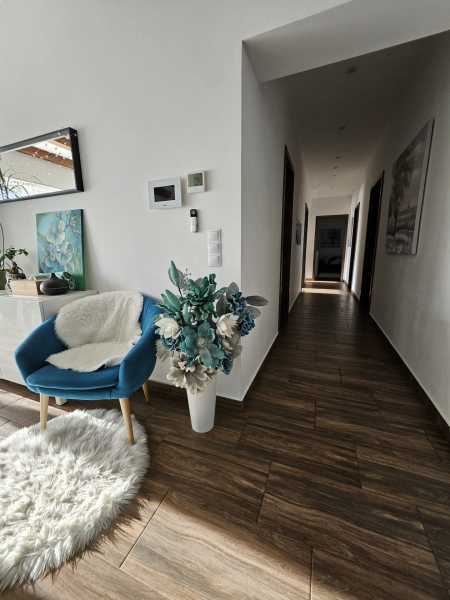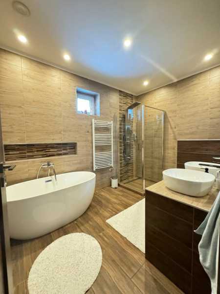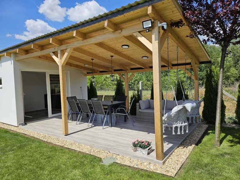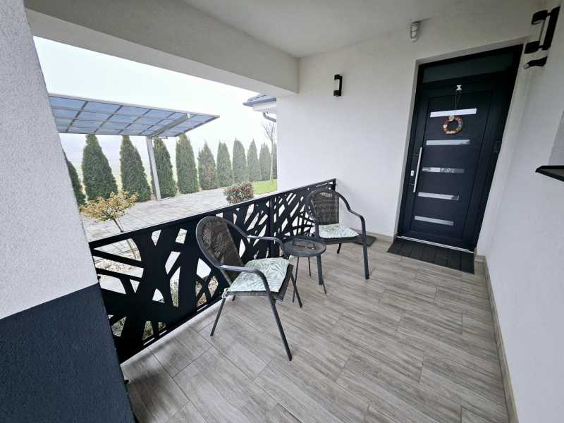 Nyíregyháza-Borbánya egyik új, csendes utcájában, a városhoz közel eladó egy 2019-ben épült, minden igényt kielégítő, modern családi ház. Az ingatlan 3,5 hálószobával, amerikai konyhás nappalival és fűtött garázzsal rendelkezik, emellett okosotthon-rendszerrel, kiemelkedő energiahatékonysággal és prémium minőségű felszereltséggel biztosít maximális kényelmet. Főbb jellemzők: - 120 nm lakótér: amerikai konyhás nappali, 3 hálószoba, fürdőszoba-wc, közlekedő, gardrób - Energiahatékony kialakítás – 2,5 kW napelemes rendszer, rendkívül alacsony rezsiköltség - Okosotthon funkciók – telefonról vezérelhető kapuk, garázs, fűtés, klíma, riasztó és kamerarendszer - Fűtés és hőszigetelés – kondenzációs gázkazán, padlófűtés, radiátorok, 10 cm grafit szigetelés - Modern konyha – minőségi beépített gépek (hűtő, sütő, mikro, főzőlap, mosogatógép), spájz - Kert és kinti kiegészítők – szépen gondozott kert automata öntözőrendszerrel, nyári konyha tárolóval és filagóriával, homokos játszótér a gyerekeknek - Garázs és parkolás – 18 m²-es fűtött garázs + modern Ximax acél gépkocsibeálló az udvaron - Tiszta vízellátás és fenntarthatóság – víztisztító berendezés és bio szennyvízlebontó rendszer Ez az önfenntartó, korszerű otthon ideális választás azoknak, akik alacsony fenntartási költségű, biztonságos és kényelmes életteret keresnek egy nyugodt, mégis jól megközelíthető környéken. Hívjon bátran és tekintsük meg együtt!