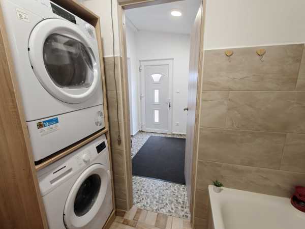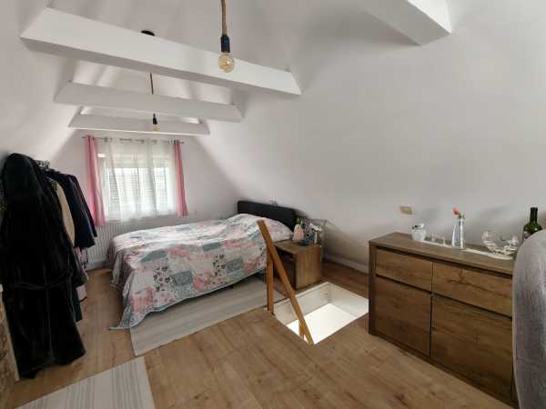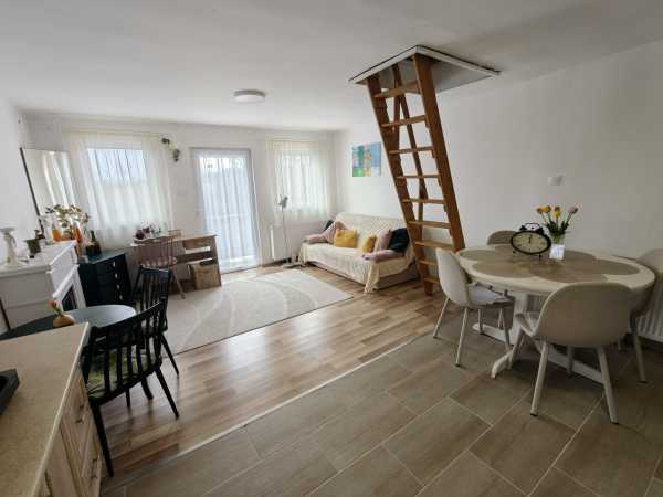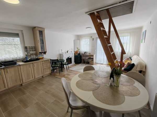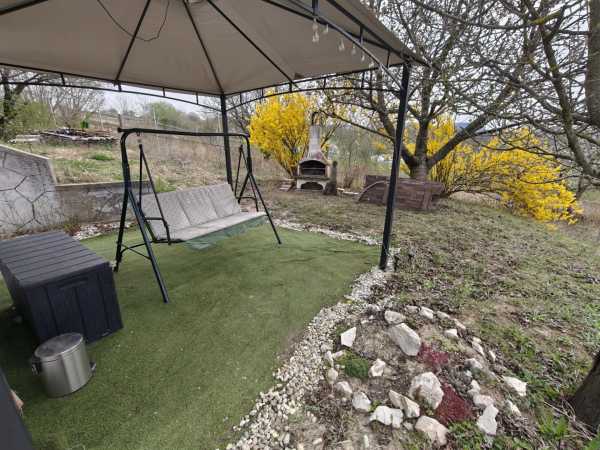 Megvételre kínálok Esztergom kedvelt külterületi részén, Diósvölgyben egy nagyon hangulatos kis házat. Az 1924 nm-es terület a tulajdoni lapon kert és gazdasági épületként szerepel, művelési ág alól nem kivont, így "kifüggesztésköteles". A telek téglalap formájú, körbekerített, szépen gondozott, kiválóan alkalmas konyhakert kialakítására, de pihenőkertként is remekül használható. Enyhén emelkedős, innen gyönyörű kilátás nyílik a szemközti hegyekre. A területet számos gyümölcsfa ( cseresznye, meggy, alma, körte, sárgabarack, ringló) tarkítja. A terület felső réstére épült ház alapterülete 40 nm, az alsó szinten egy tároló, kazánház, mögötte pince található. A lakószintet ez emeleten alakították ki, a tetőteret is beépítették. A házat tulajdonosai az elmúlt években teljeskörűen felújították. Az alsó szinten az előtérből szemben nyílik a fürdőszoba, jobbra a konyha-étkező-nappaliba jutunk, mely egy panorámás erkélyben végződik. Innen egy falépcső vezet a tetőtérbe, ahol egy hálószobát és egy dolgozósarkot alakítottak ki. A felújítás sorén kicserélték a vezetékeket, az összes burkolatot, a nyílászárókat műanyagra cserélték, redőnnyel, szúnyoghálóval szerelték fel. Kialakították a központi fűtést, mely vegyes tüzelésű kazánról üzemel radiátoros hőleadással. A nappaliban egy hangulatos elektromos kandallót is beállítottak. A meleg vizet villyanbojler szolgáltatja. A nyári nagy meleget a tetőtérben elhelyezett mobilklíma enyhíti. A födémet 10 cm üveggyapottal szigetelték, a tetőt cserepes lemezzel fedték. A ház kívülről 10 cm dryvit szigeteést kapott, már csak a színezés van hátra. Az ingatlanban 16 Amper áll rendelkezésre, a vizet egy nemrég fúrt 45 méter mély, bővízű kútból nyerik. A ház előtt egy hangulatos szaletli áll, mellette a grillezési lehetőség adott. A havi rezsi 30000 Ft alatt van, a környéken szelektív hulladékgyűjtés szokványos. Ajánlom mindenkinek, akinek a csend, és a nyugalom fontos szempont. Az ingatlanban rengeteg lehetőség rejlik, használjuk akár rövidebb vagy hosszabb pihenésre, vagy akár állandó lakhatásra. A konyhabútor, és igény szerint a többi bútorzat is a vételár részét képezi. Az ingatlan per-, teher-, és igénymentes, előzetes egyeztetés után a hét bármely napján megtekinthető. Amennyiben hirdetésem felkeltette érdeklődését, vagy bővebb információra van szüksége, hívjon a megadott számon telefonon, vagy WhatsAppon. Irodánk teljes körű jogi háttérrel, földhivatali ügyintézéssel áll ügyfelei rendelkezésére.