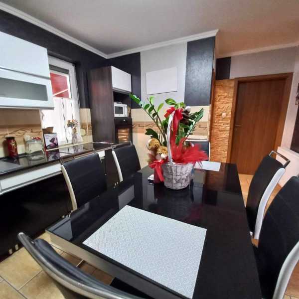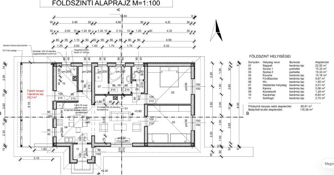 Nyíregyháza Újkistelekiszőlős városrészében kínálok megvételre egy 2014-ben épült ÖNÁLLÓ CSALÁDI HÁZAT a következő paraméterekkel: - 117 m2 lakó terület - 740 m2 telek terület - 2 szoba + nappalis (De kömmyen 3 szobásra alakítható !!! ) - B30-as tégla falazat 10 cm nikecel szigeteléssel - Nyeregtetős cserepes héjazat 30 cm födém szigeteléssel - Műanyag nyílászárók redőnnyel - Vegyes tüzelésű kazán fűtéstechnika lapradiátoros hőleadással (Kandalló fűtés alternatíva) - Klmás hűtés (akár fűtés) Az ingatlan főbejárata egy szélfogó-előtéren keresztül az amerikai konyhás étkezős-nappaliba vezet. A 2 teljes értékű szoba természetes külön nyílik. Mivel méretük azonos és kellően nagy (15-15 m2) valamint csak válaszfalak különítik el azokat egymástól, így akár 3 szobássá is alakítható!! (alaprajz) A fürdőszobából leválasztásra került egy mosókonyha és a mosdó is külön helységben kapott helyet. A kazánházban a 30 KW-os vegyes tüzelésű kazán mellet -praktikusan- egy falikút és egy wc került kialakításra. Az udvari kijárás a zárt , beépített, téliesített (fűtött) , konyhával is rendelkező teraszon keresztül biztosított. Mivel a mosdóval rendelkező kazánház e mellet lett kialakítva, így egy-egy családi/baráti rendezvény alkalmával a privát élettérbe nem feltétlenül kell beengedni vendégeinket! Az utcafronton a gáz hálózat is elérhető. Gépkocsi tárolása zárt beállón biztosított. Az udvaron több könnyűszerkezetes melléképület is található, melyek akár bonthatóak is , ha nagyobb pihenőkertet szeretnénk. Bővebb tartalomért és bank független hiteltanácsadásért keressen bizalommal!