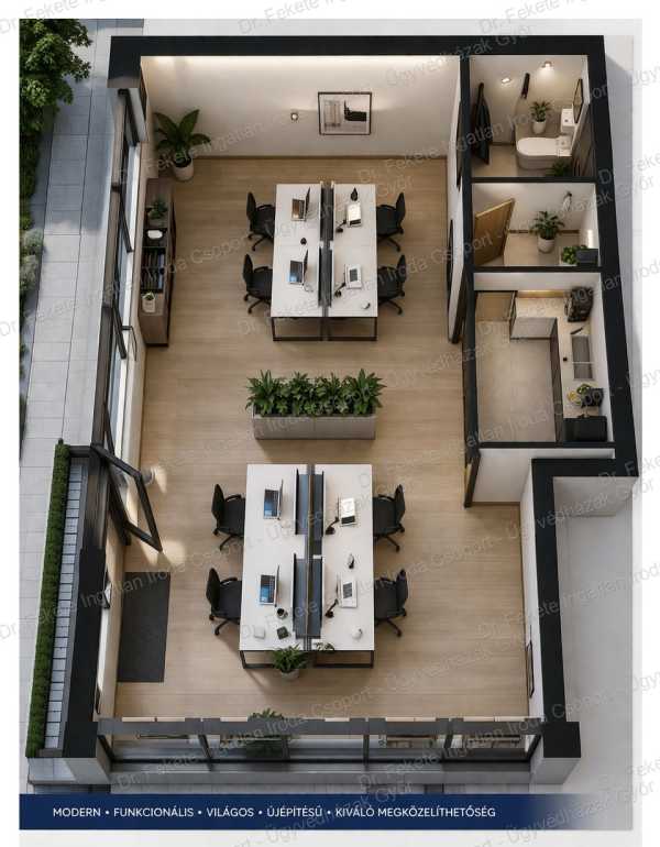 Ne keresgélj tovább – ezt az ingatlant most érdemes lefoglalni. Többcélú kialakítási lehetőséggel. A 3%-os Széchenyi hitellel is megvásárolható ingatlan, a belvároshoz közel, de mégis könnyen megközelíthető helyen. Győr egyik legkeresettebb városrészében, Nádorvárosban, egy modern, 15 lakásos társasház földszintjén kínálunk megvételre egy 48,22 nm-es, DK-i tájolású, utcafronti ingatlant. A hatalmas üvegportálnak köszönhetően egész nap világos, így tökéletes választás saját célra, kiadásra vagy biztos, értékálló befektetésként. Ami azonnal mellette szól: – alacsony rezsi, A / A+ energetika – kiváló láthatóság és könnyű megközelítés – ideális méret → gyors bérbeadhatóság, magas hozam Műszaki tartalom – amire hosszú távon számíthatsz: ✔ 3 rétegű hőszigetelt nyílászárók ✔ masszív vasbeton szerkezet ✔ 20 cm kőzetgyapot szigetelés ✔ korszerű, több rétegű vízszigetelés Modern gépészet: ✔ központi kazánrendszer ✔ padlófűtés ✔ klíma előkészítés-opcionális Extra lehetőségek (korlátozott számban): – Mélygarázsban GK beálló: Ár: 8,5 M Ft / db – Tároló: 1,75 M Ft /db (2 nm -2,59 nm) Átadás: 2027- fűtéskész állapotban Ár: nettó hirdetési ár (ÁFA + 27 %) Miért most? Az új építésű irodák Nádorvárosban gyorsan elfogynak. Korai foglalással jobb áron kapod. Ne maradj le – ez egy tipikus „gyors döntés, jó üzlet” lehetőség. A képek és látványterv az értékesítést szolgálják, illusztrációk.